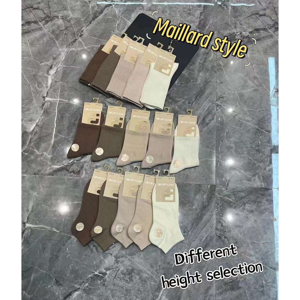 ถุงเท้าคอตตอนแท้แบบถักมีสีเข้าน้ำหนักเบาระบายอากาศได้นุ่มยาวถึงข้อเท้าสไตล์พรีเมี่ยมน่ารักสำหรับฤดูร้อนฤดูใบไม้ผลิฤดูหนาว
