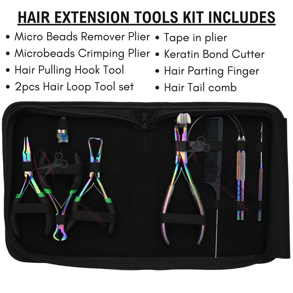 ชุดอุปกรณ์ต่อผมเรนโบว์ คีมต่อผม ไมโครบีดส์ ที่ถอดเม็ดบีดส์ ตะขอเกี่ยวและเครื่องมือติดเทป คีมตัดเคราติน หวีปลายแหลม