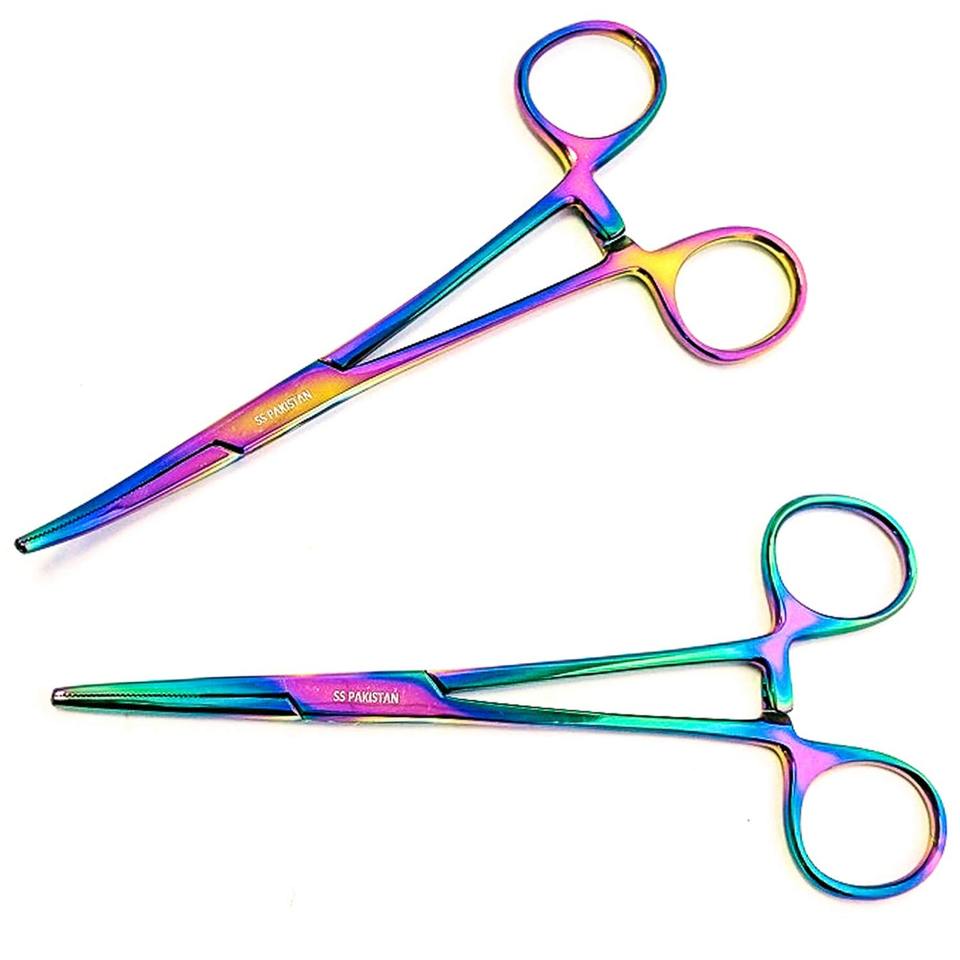 ชุดคีมจับเลือด Rainbow Hemostat ขนาด 5 นิ้ว แบบตรงและโค้ง คีมจับยุง สแตนเลส พร้อมตัวล็อค สำหรับการแพทย์ โดย Shu&Co OEM