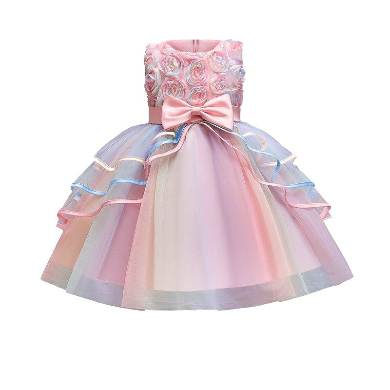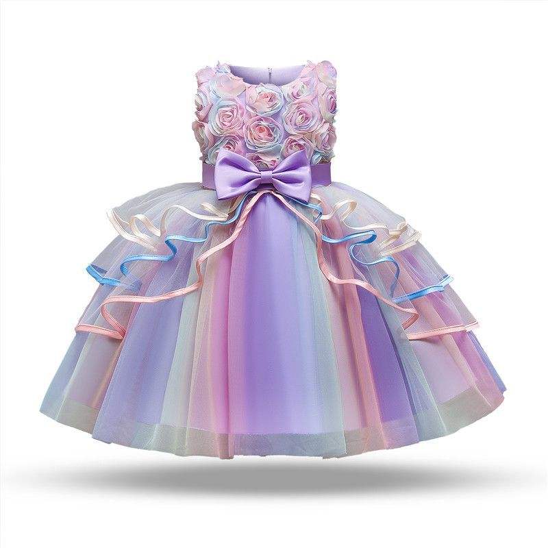 ชุดเดรสแฟนซีงานวันเกิดคุณภาพสูงสีรุ้ง ชุดเจ้าหญิงสำหรับเด็กผู้หญิง