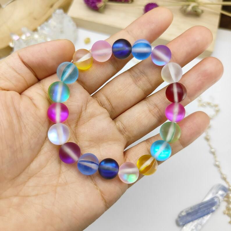 คีย์เวิร์ด:สร้อยข้อมืออัญมณีลูกปัดสีรุ้งทรงกลม