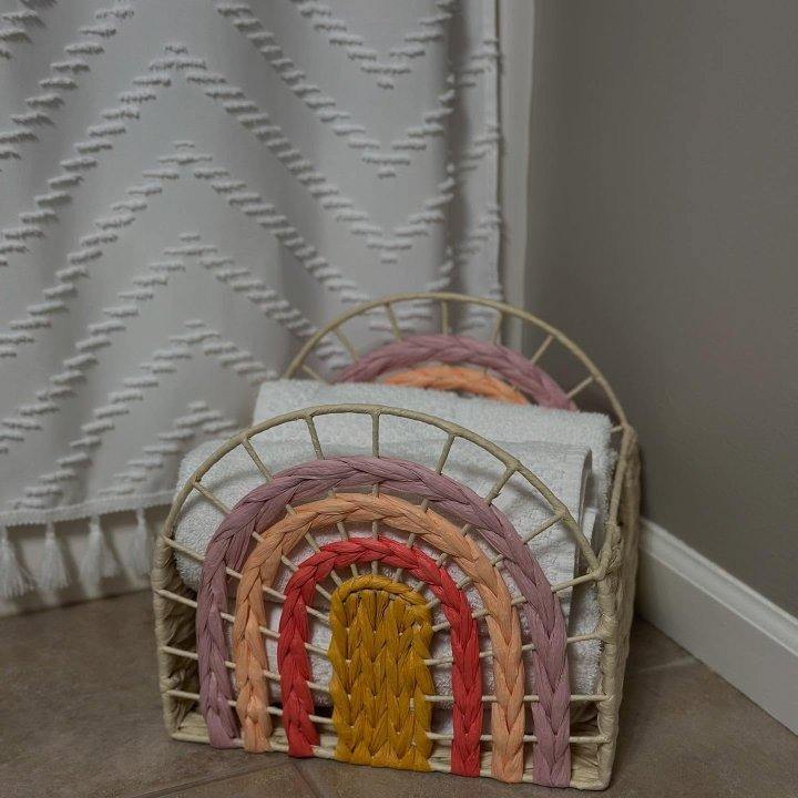 ตะกร้าเก็บหนังสือเด็กสีรุ้ง ตะกร้าเก็บของทำมือจากวัสดุธรรมชาติ ขายส่ง เป็นมิตรกับสิ่งแวดล้อม ผลิตในเวียดนาม
