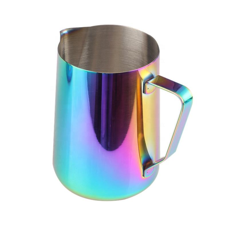 เหยือกตีฟองนมสีรุ้งเหยือกสแตนเลสขนาด350มล./600มล./900มล.