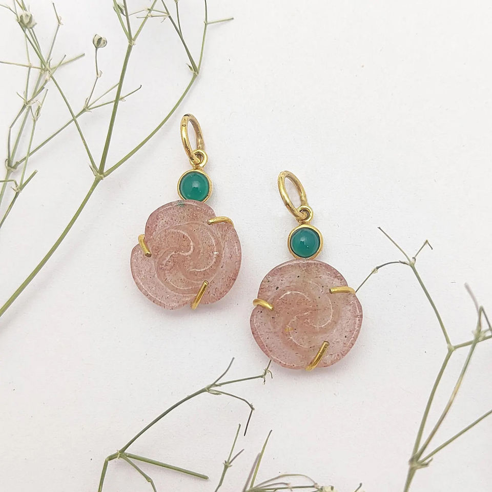 จี้แกะสลักพลอยสีทอง15มม. จี้925สีเงินรูปกุหลาบ