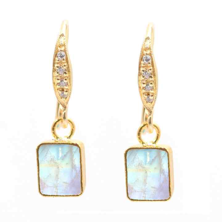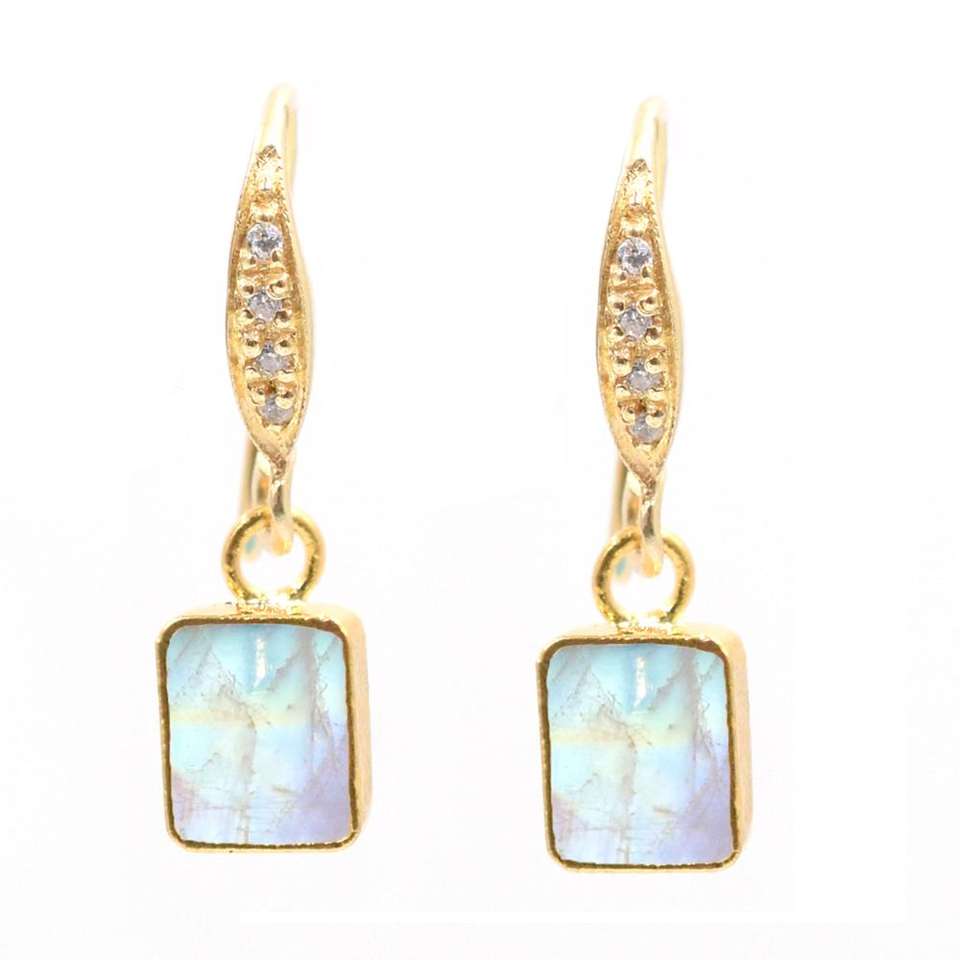 Product Name:Rainbow Moonstone Ear Wire Rectangle Shape Gold Electroplated Earring