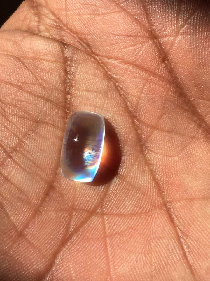 มูนสโตนสีรุ้ง 7.94 กะรัต ทรงคุชชั่น รูปทรงหลวม พลอยมูนสโตนแบบคาโบชอง คุณภาพพรีเมียม ระดับท็อป ขายส่ง OEM