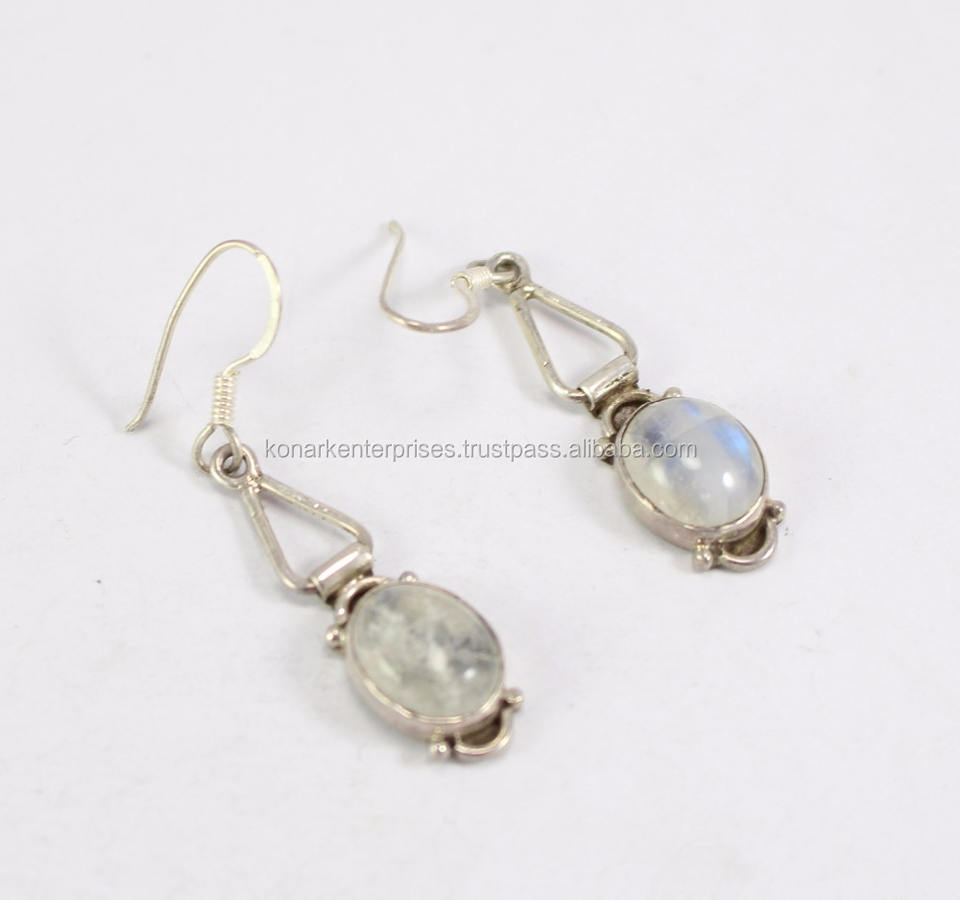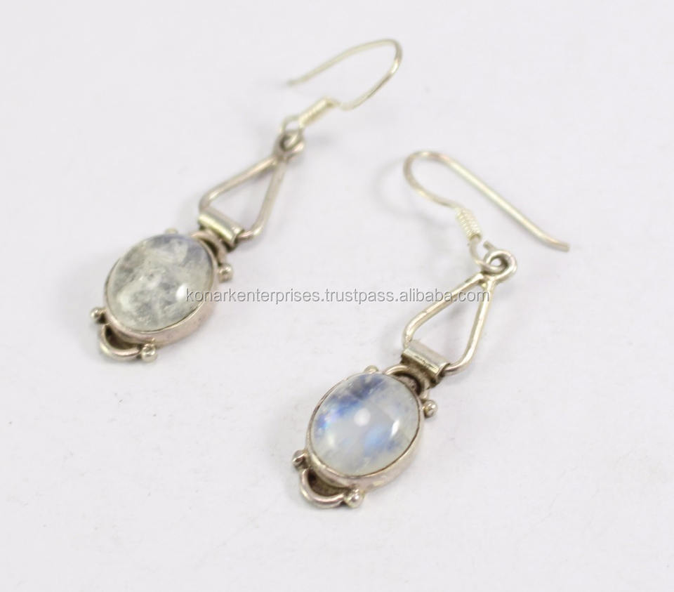 เรนโบว์มูนสโตน925ต่างหูเงินแฮนด์เมดเครื่องประดับเงินพลอยต่างหูขายส่งราคาโรงงาน