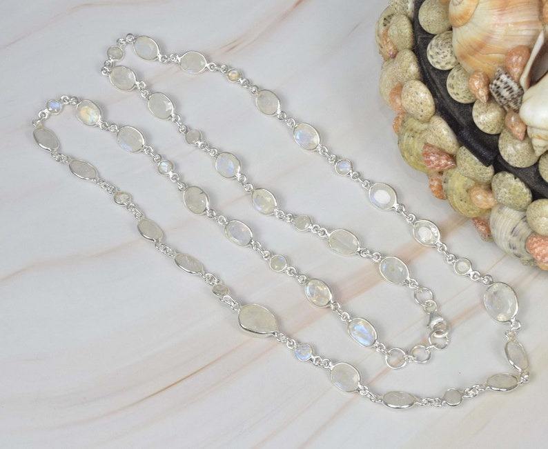 เรนโบว์มูนสโตน 925 เงินสเตอร์ลิงอัญมณีจี้ลูกโซ่รูปลูกแพร์เดือนมิถุนายน Birthstone ของขวัญคริสต์มาส