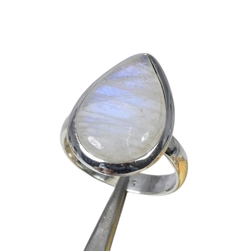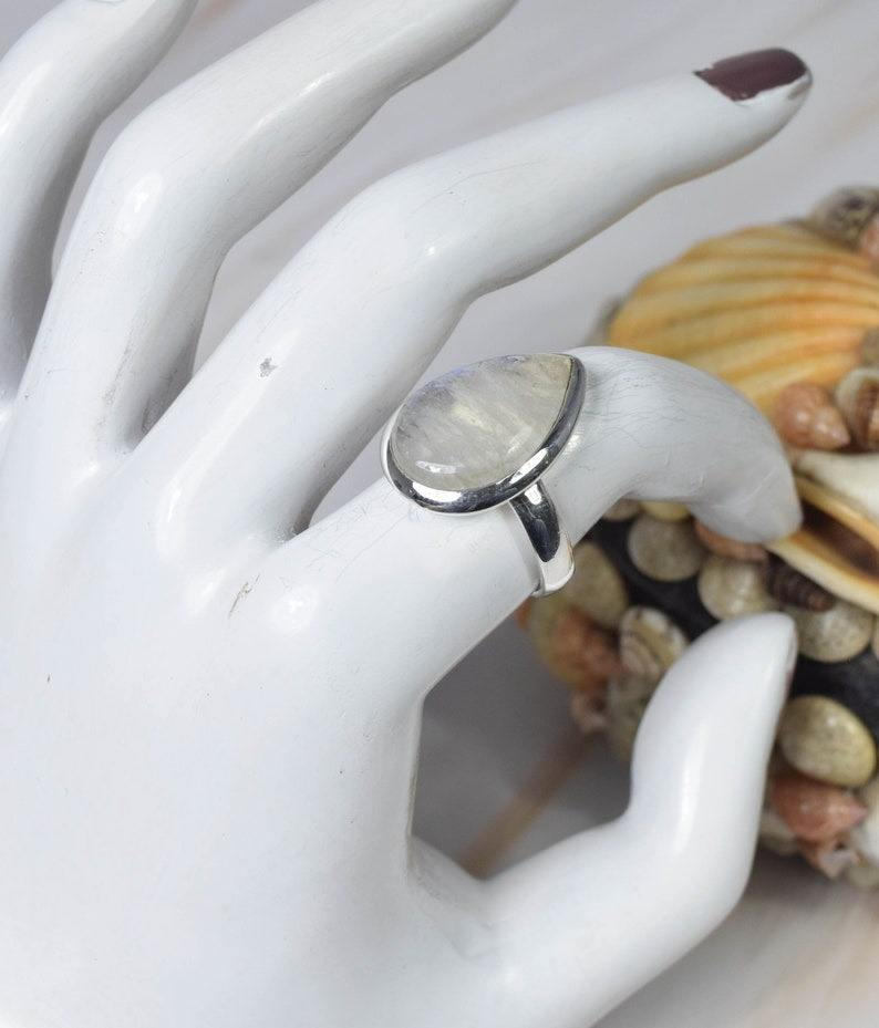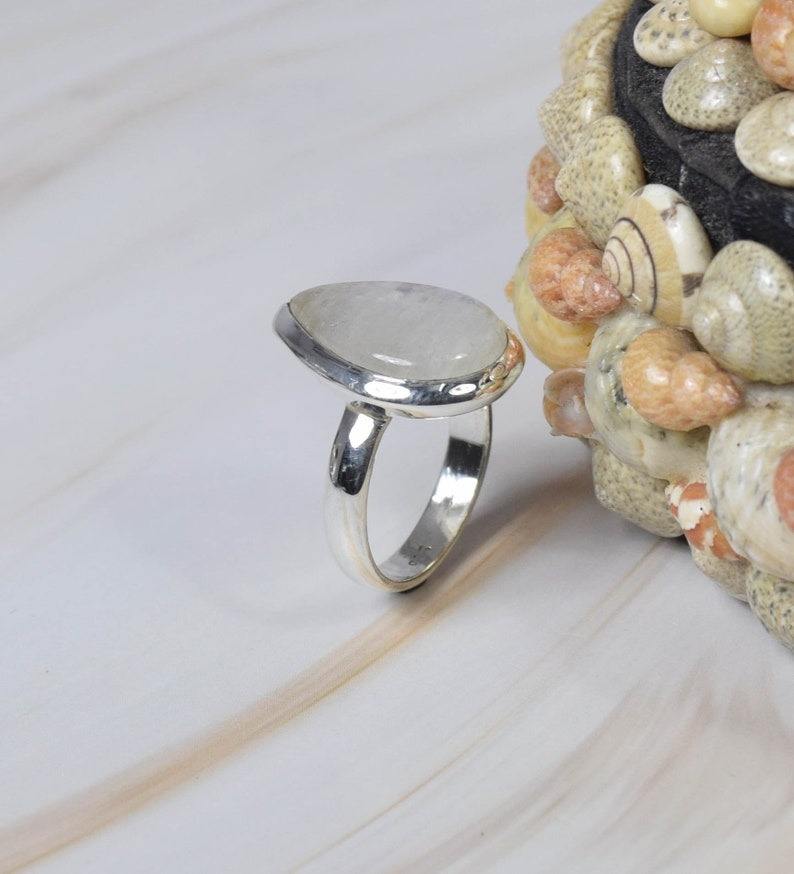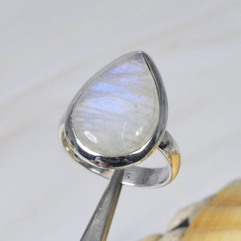 แหวนเงินแท้ 925 ประดับพลอยมูนสโตนสีรุ้ง ดีไซน์มินิมอลทันสมัย ฝังแบบ Bezel ทำด้วยมือ เครื่องประดับประจำเดือนมิถุนายน รูปทรงลูกแพร์ ของขวัญ