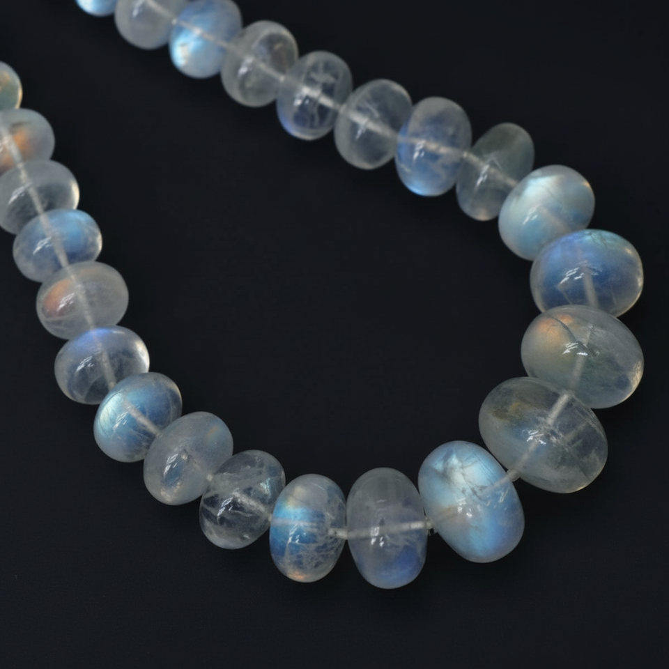 ลูกปัดมูนสโตนสีรุ้งพลอยธรรมชาติสำหรับทำเครื่องประดับมูนสโตนสีไฟฉูดฉาดสีฟ้าพร้อมลูกปัดหลวมๆ