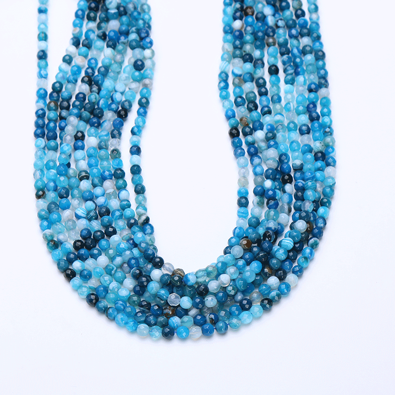 ลูกปัดมูนสโตนสีรุ้ง หินธรรมชาติแท้สำหรับขาย ขนาด 3 มม.-8 มม. ขัดเงา หินอาเกตสีน้ำเงิน ผ่านการบำบัดด้วยแร่