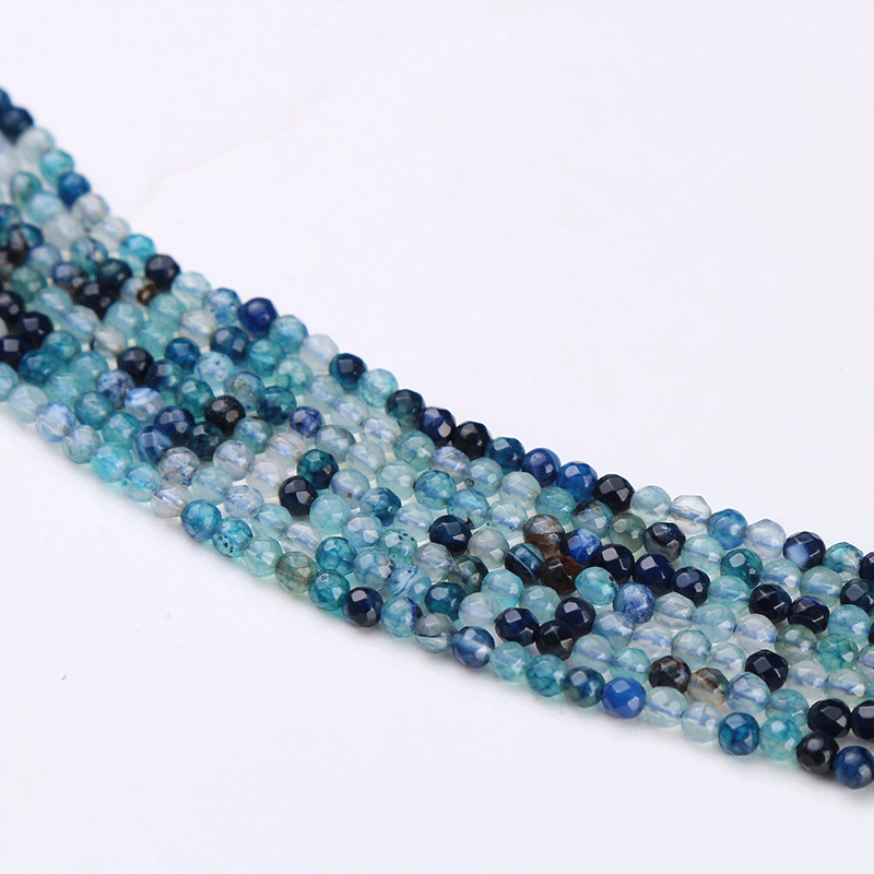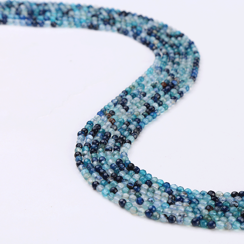 ลูกปัดมูนสโตนสีรุ้ง ขาย 24/7 ขนาดปรับแต่งได้ หินสีน้ำเงินขัดเงา พร้อมวัสดุมิเนอรัล คอรัล และอาเกต ขนาด 3-8 มม.