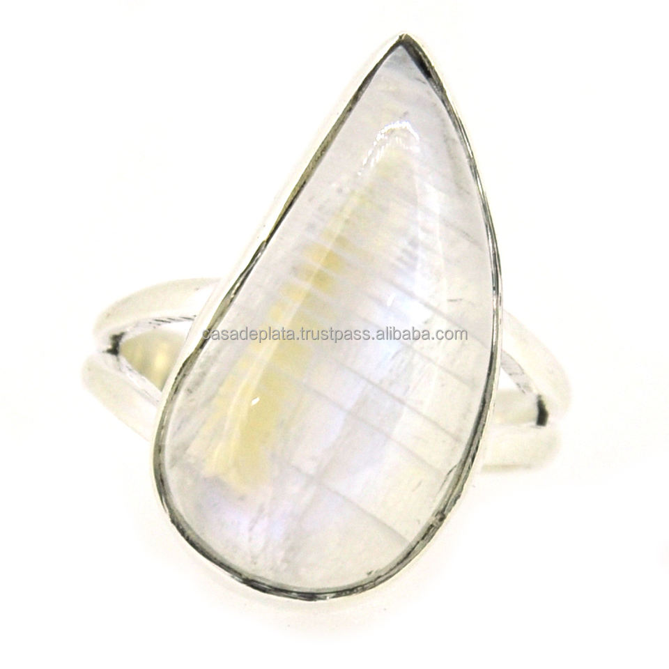 แหวนเงินสเตอริง925ธรรมชาติพลอยมูนสโตนสีรุ้งพร้อมแหวนเงินชุบทันสมัยแหวนแฟชั่นสำหรับผู้หญิง