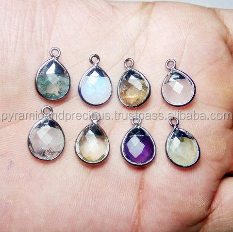 จี้รูปพระจันทร์สีรุ้งประดับอัญมณีรูปลูกแพร์ยูนิเซ็กซ์พร้อมหมวกออกซิไดซ์จากนาโนซิลเวอร์-เหมาะเป็นของขวัญสำหรับเด็ก