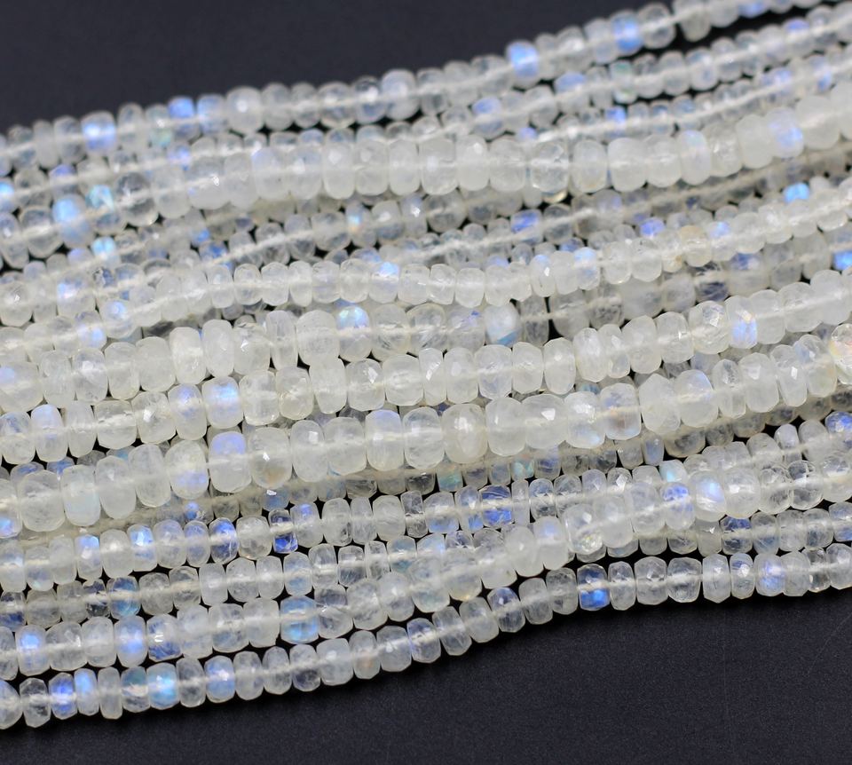 ลูกปัดมูนสโตนสีรุ้ง บลูไฟร์ ทรงรอนเดลล์ ขนาด 12 นิ้ว ร้อยเป็นเส้น ลูกปัดพลอยธรรมชาติ ราคาขายส่ง