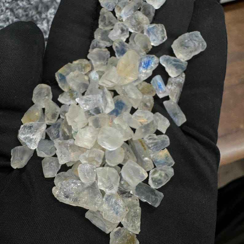 เรนโบว์มูนสโตน หินธรรมชาติ รูปทรงผสม ไฟสีฟ้า คุณภาพดีที่สุด น้ำหนักปรับแต่งได้ สำหรับทำเครื่องประดับ (มาดากัสการ์) K