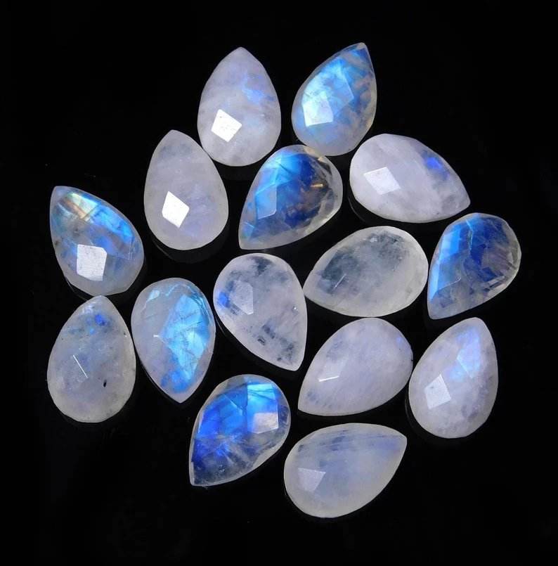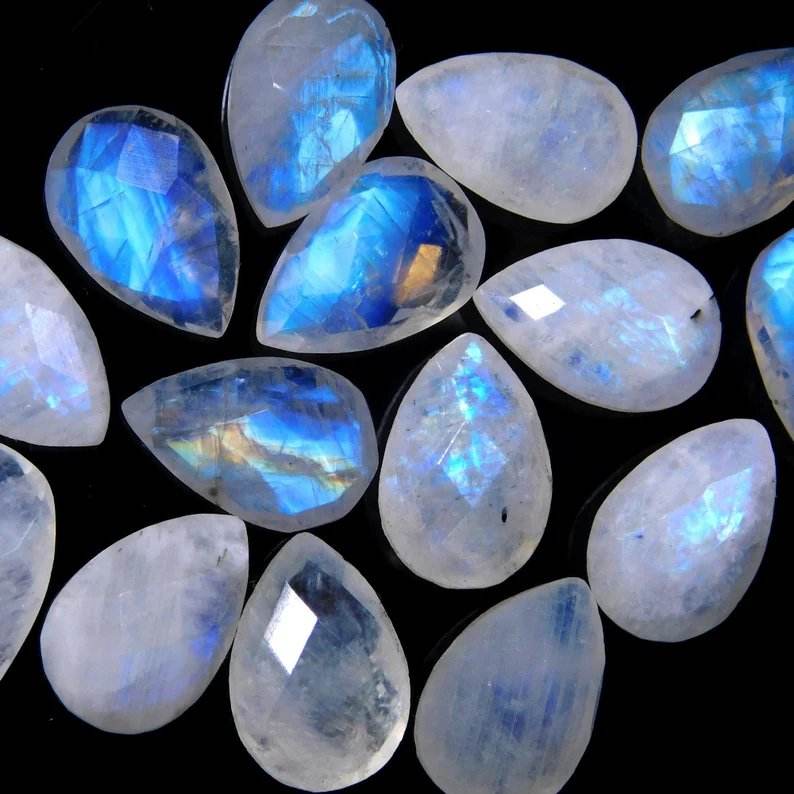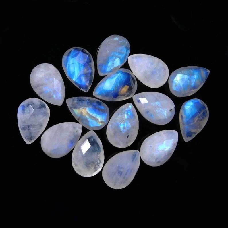 เครื่องหั่นมูนสโตนสายรุ้งรูปลูกแพร์สีดอกประกายแสงสีฟ้าสำหรับทำเครื่องประดับขนาด8x12มม.