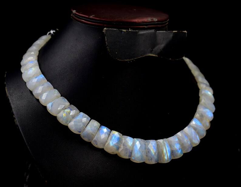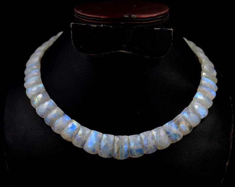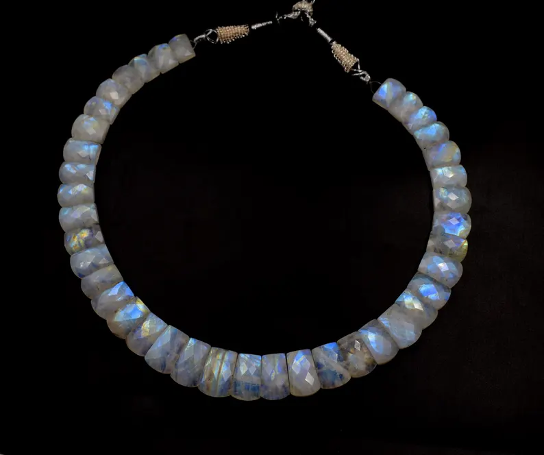 สร้อยโชคเกอร์มูนสโตนสีรุ้งสไตล์ลูกปัดแฟชั่นพร้อมลูกปัดสีน้ำเงินประกายหินมูนสโตนสำหรับผู้ชมผู้หญิง
