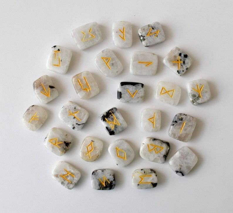 ชุดหินรูนเรนโบว์มูนสโตน คริสตัลเจมสโตน ขัดเงา คุณภาพพรีเมียม สลักลายหินบำบัด ฟูทาร์ก มาสคาโท มุนทาฮะ อาเกต