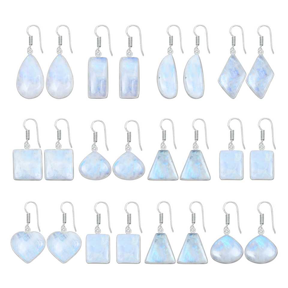 Rainbow Moonstone 925 Silver Clip-On Earrings Fine Jewelry with Natural Iridescent Glowing Moonstone and Flashes of Blue