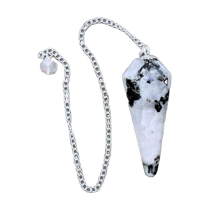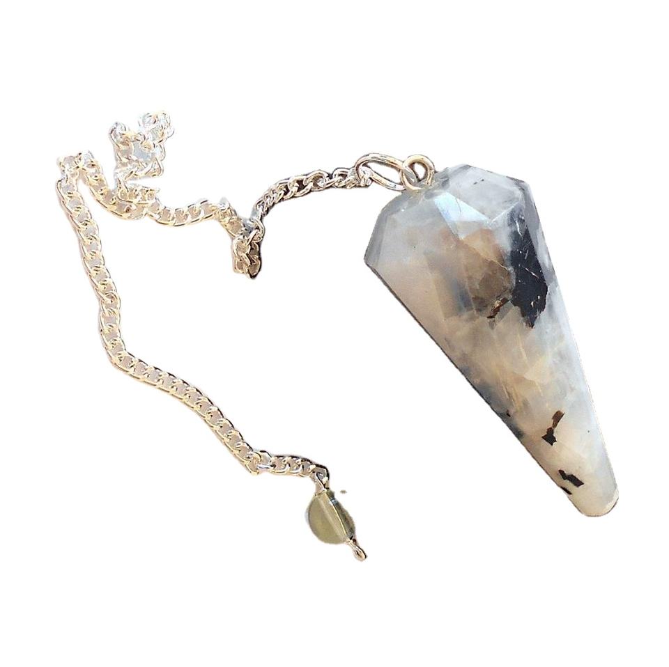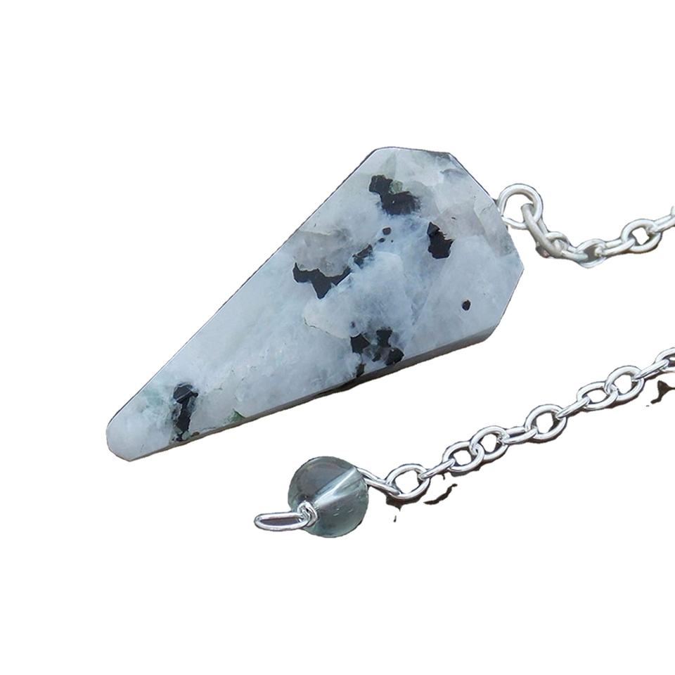 หินจันทราสีรุ้งคริสตัลเหลี่ยมเพชรพลอยคริสตัลลูกตุ้มรักษาฮวงจุ้ยเรกิปรับสมดุลลูกตุ้ม Dowsing ขายในการรักษา Dowsing คริสตัล