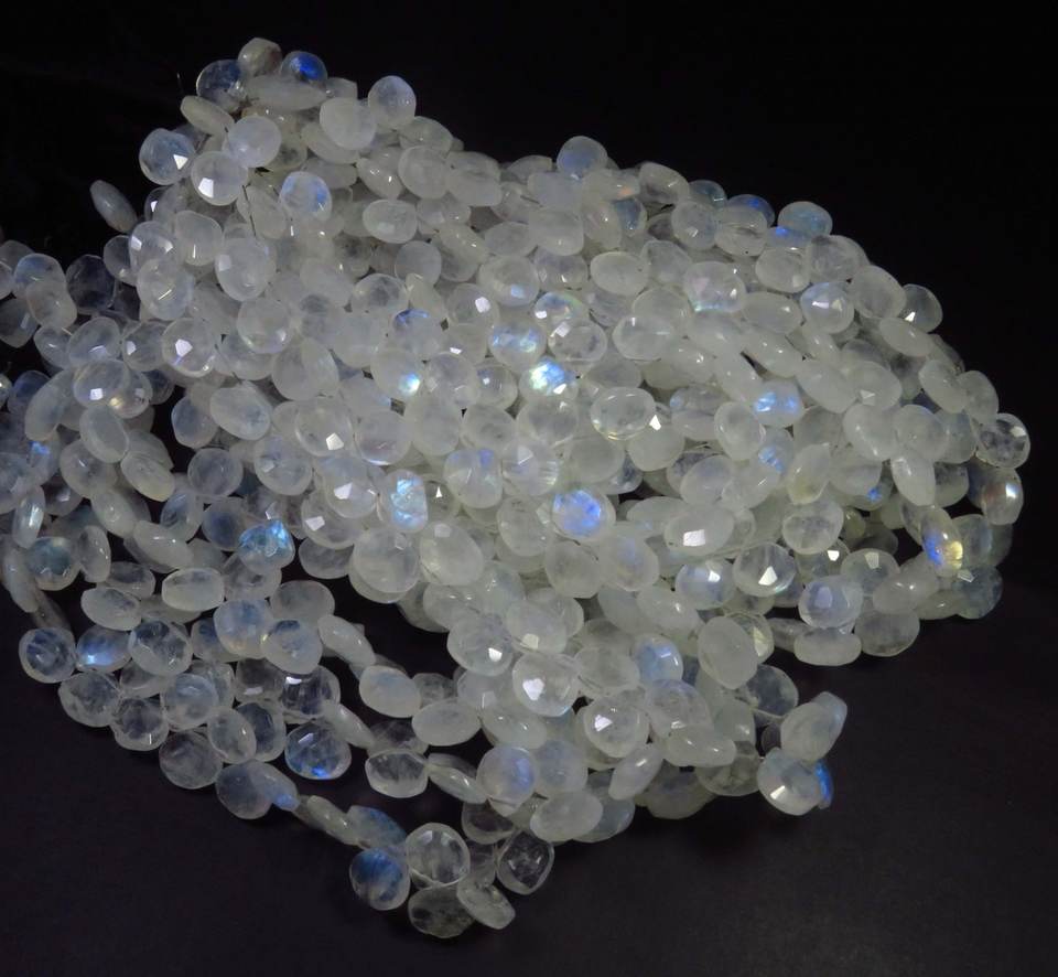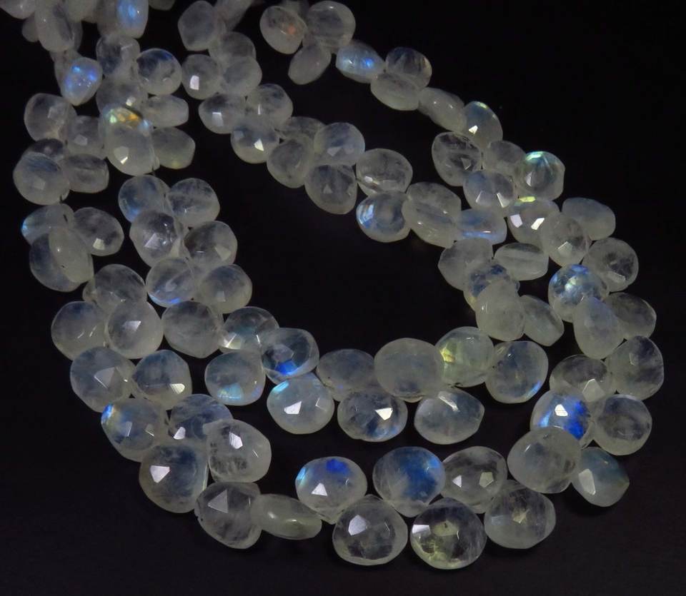 ลูกปัดสีรุ้งมูนสโตนเจียระไนแบบเหลี่ยมเพชรพลอย10 "สีขาว8.5-9มม. พลอยธรรมชาติสีรุ้งแวววาวรูปทรงหัวใจ