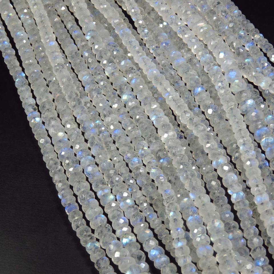 ลูกปัดพลอยมูนสโตนสีรุ้งทรงเหลี่ยม ขนาด 14 นิ้ว 4.5 มม. ธรรมชาติ ประกายเต็ม เกรดพรีเมียม แสงรุ้ง ตัดแบบหลวม