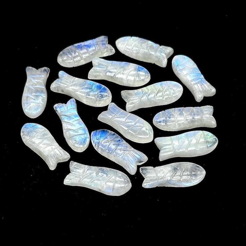จี้หินมูนสโตนรูปปลาแกะสลักด้วยมือ ขนาด 8x20 มม. จี้มูนสโตนแบบพิเศษสำหรับทำเครื่องประดับ