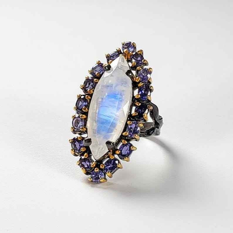 แหวนของขวัญแห่งอิสรภาพ มูนสโตนสีรุ้ง สร้างสรรค์เพื่อความสง่างามทางจิตวิญญาณ