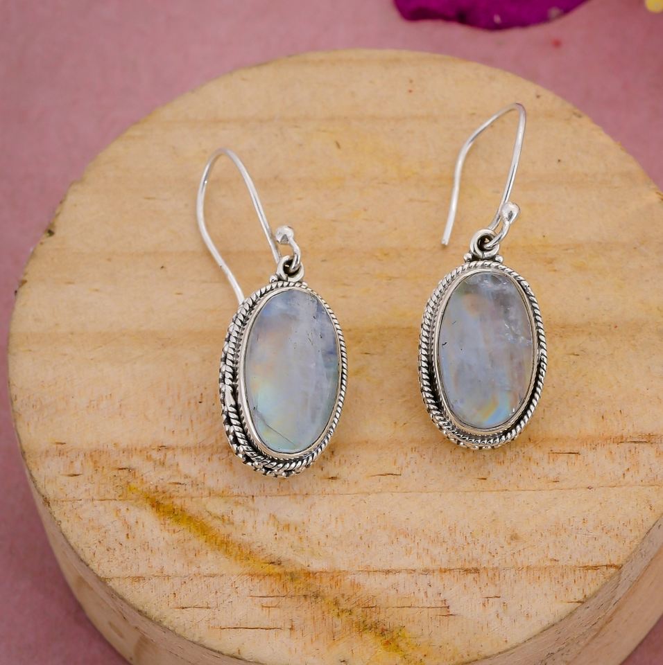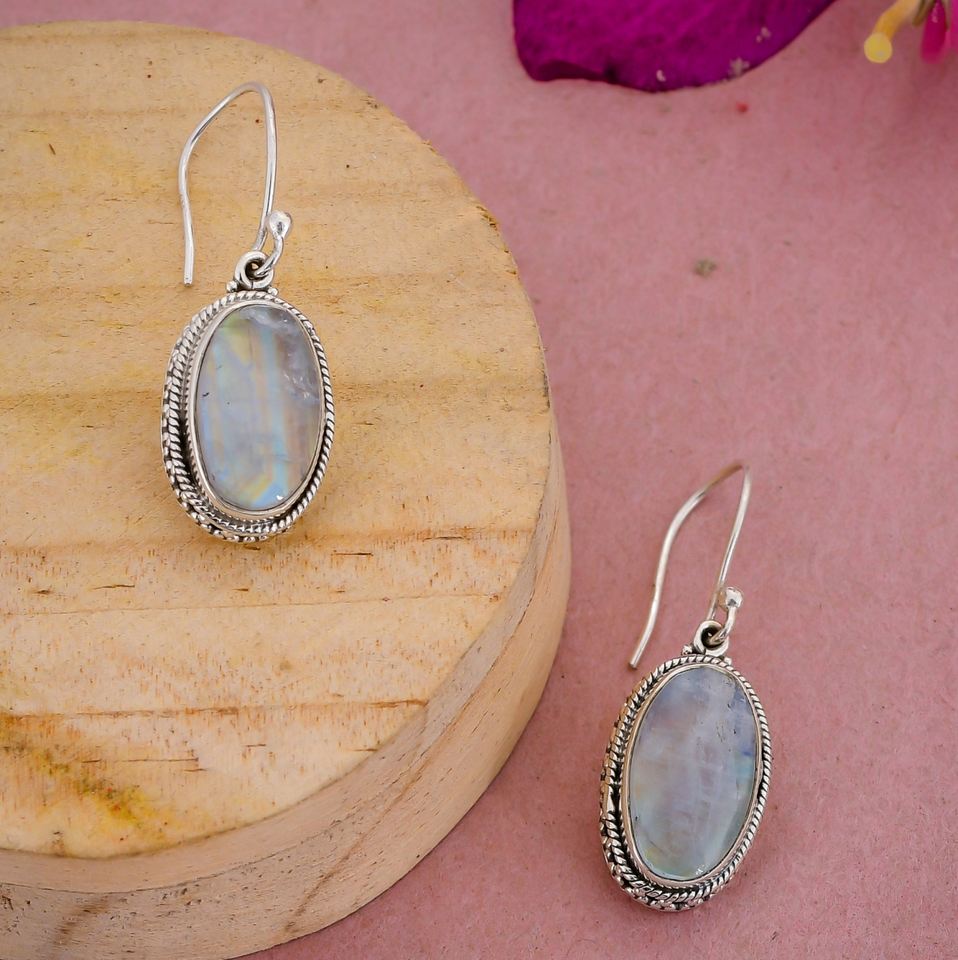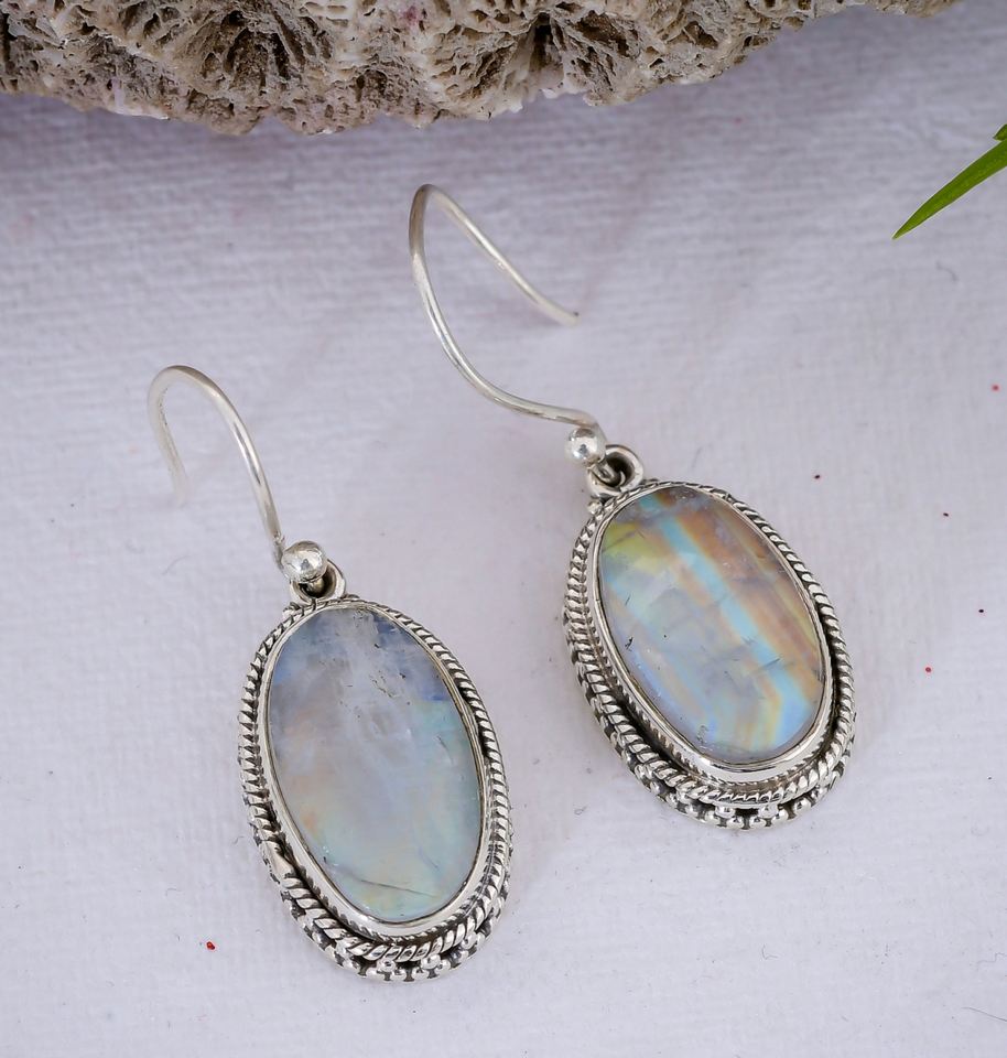925พลอยมูนสโตนสีรุ้งทำด้วยมือต่างหูแฟชั่นทำด้วยมือและดูสง่างาม