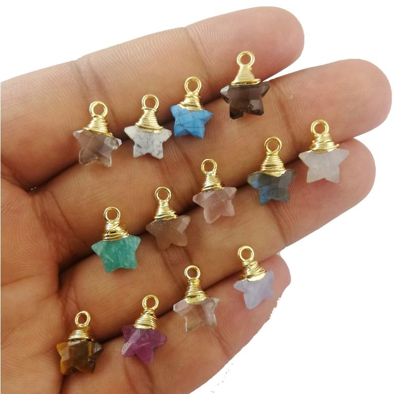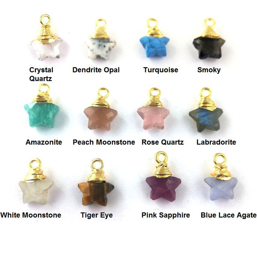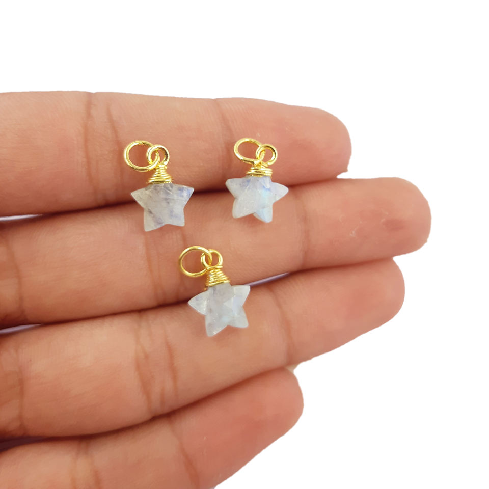 มูนสโตนสีรุ้งพลอยโกลด์ Vermeil Wire จี้รูปดาว-เครื่องประดับที่ทำให้มีเสน่ห์