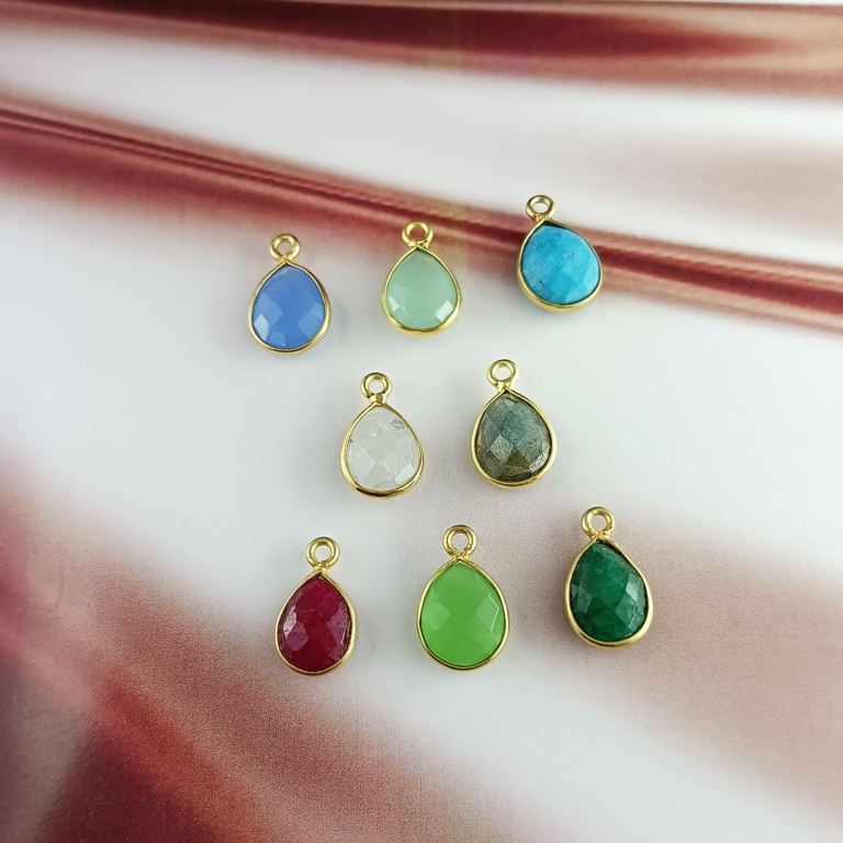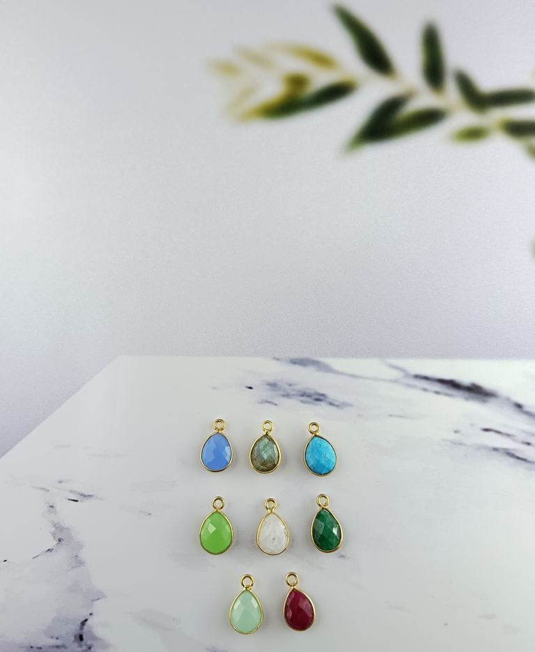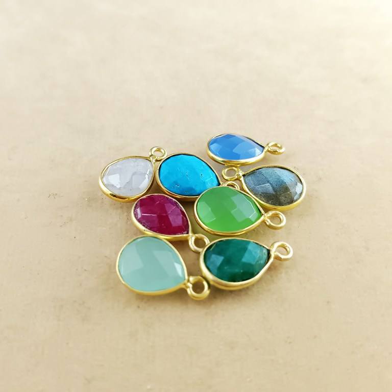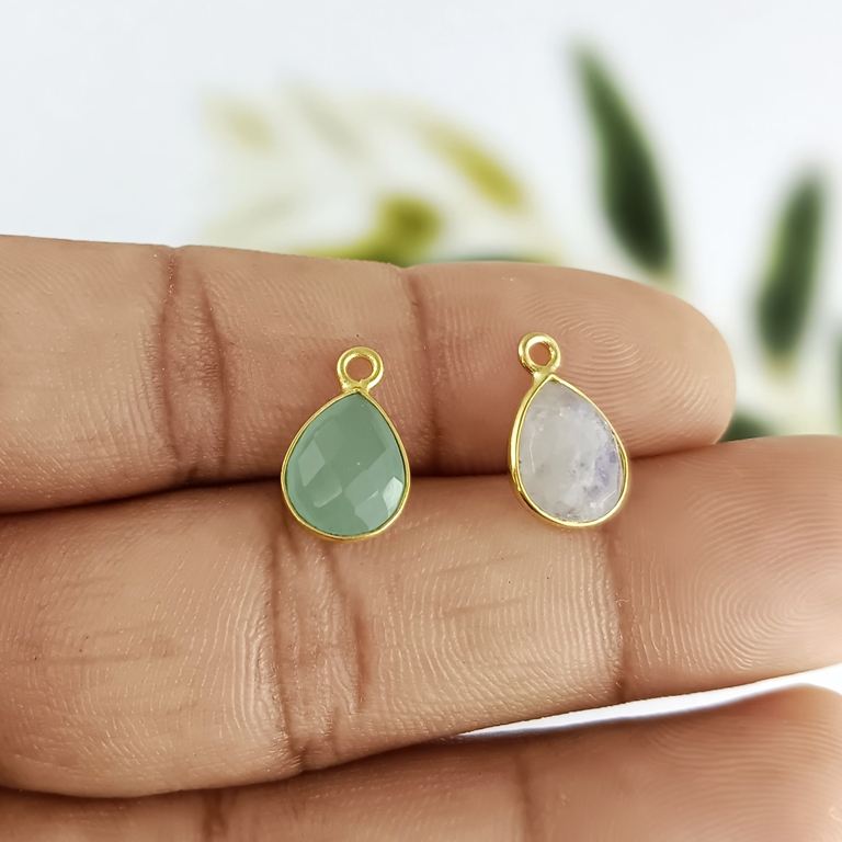 จี้รูปหยดน้ำประดับพลอยมูนสโตนสีรุ้ง ชุบทองบนเงินแท้ 925 สำหรับทำเครื่องประดับ