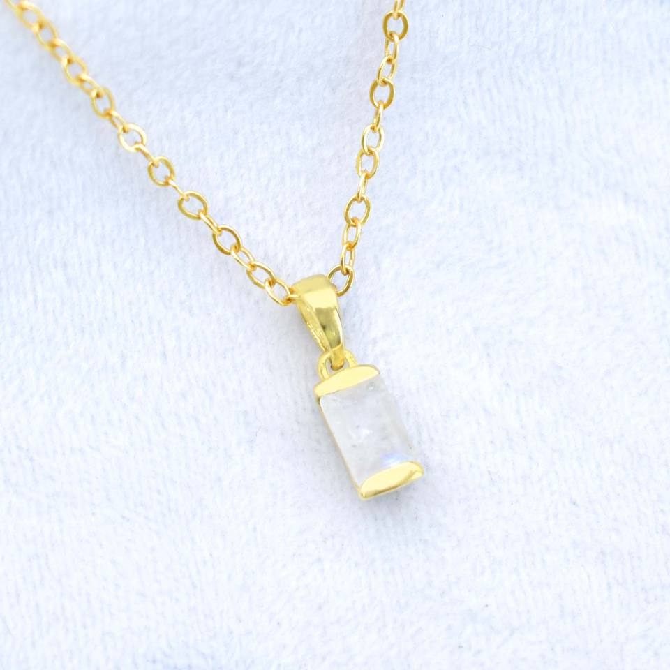 ชุดง่ามสร้อยคอชุบทองมูนสโตนสีรุ้งเครื่องประดับอัญมณีแฮนด์เมดแบบเรียบง่ายสวยงามของขวัญสำหรับความรัก