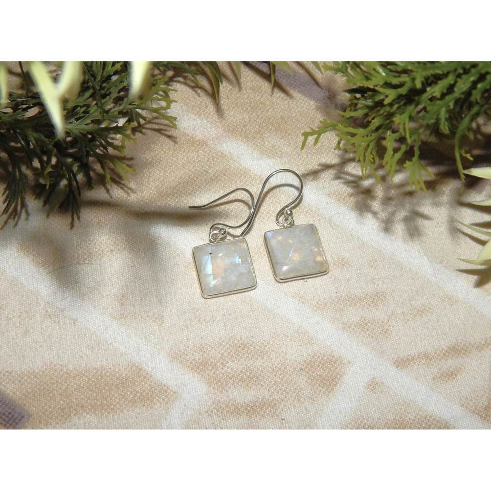 Rainbow Moonstone & Jade Dainty Earrings Handmade Sterling Silver Gemstone Women's Earrings Great Gift for Her