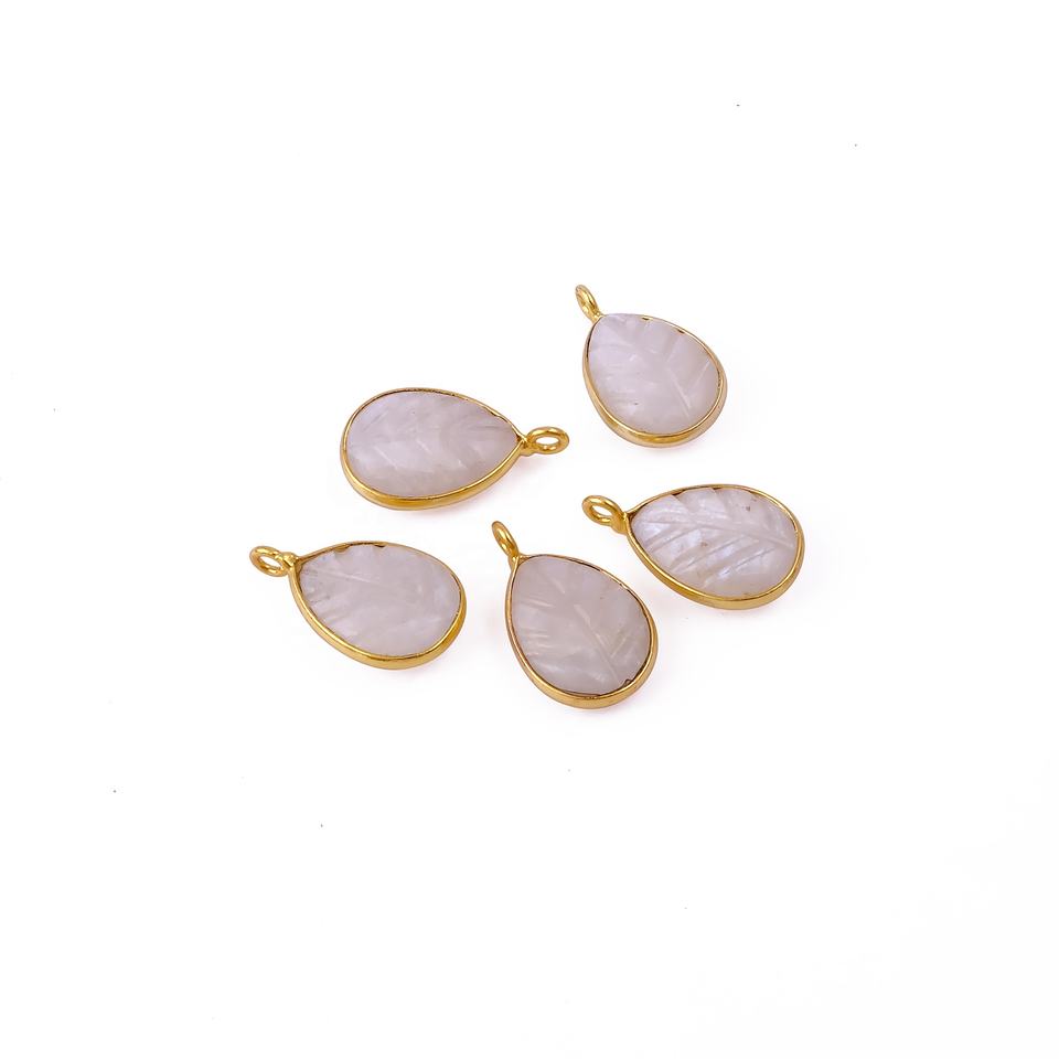 จี้รูปใบพระจันทร์สีรุ้งประดับขอบอัญมณีชุบทองสีขาวน้ำเงินแฟลชเครื่องประดับทองเหลืองทันสมัย