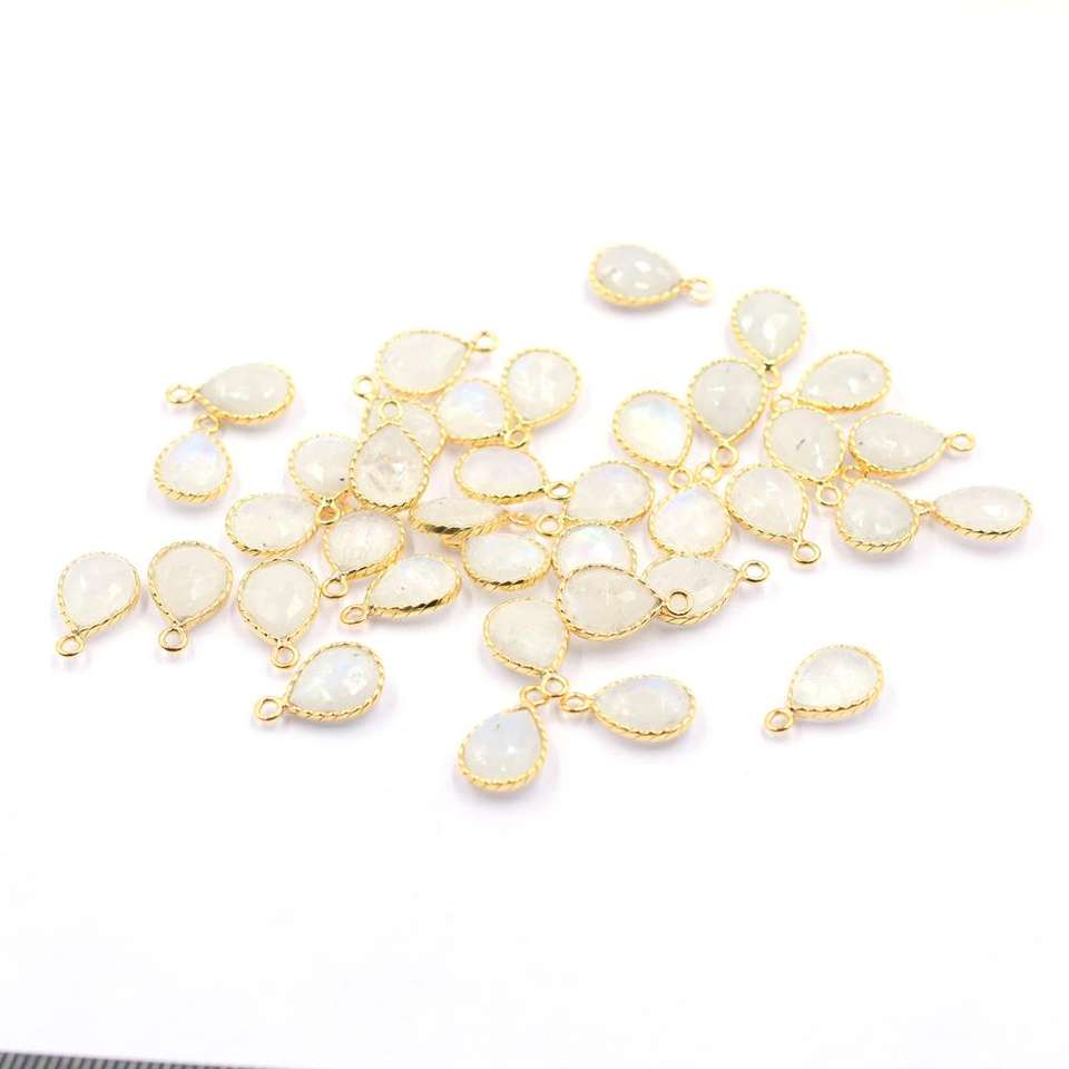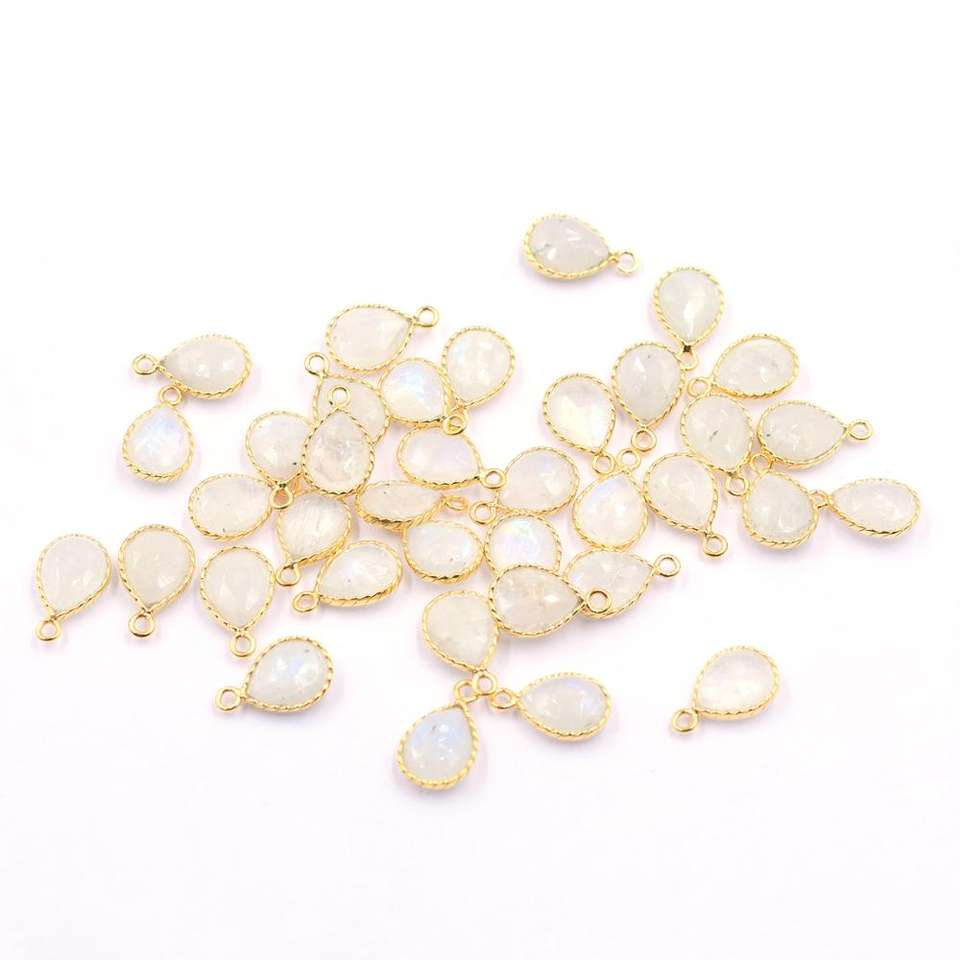 ชื่อสินค้า:จี้เงินทรงลูกแพร์ประดับมูนสโตนสีรุ้ง ชุบทอง