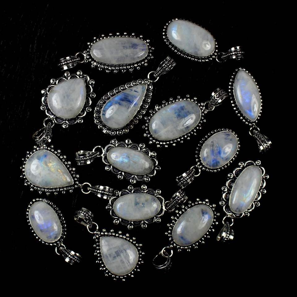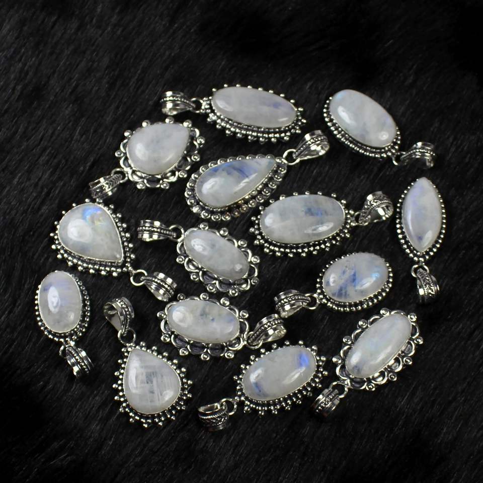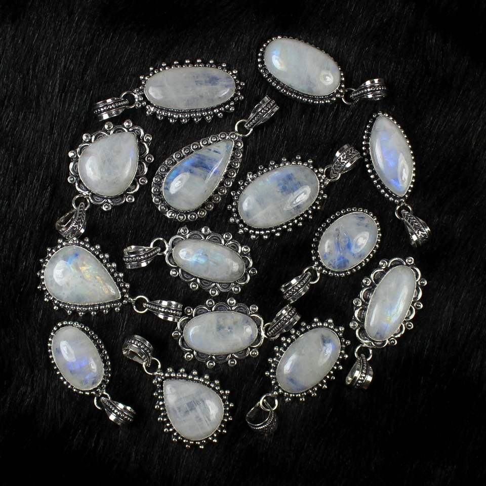 Rainbow moonstone silver plated pendants