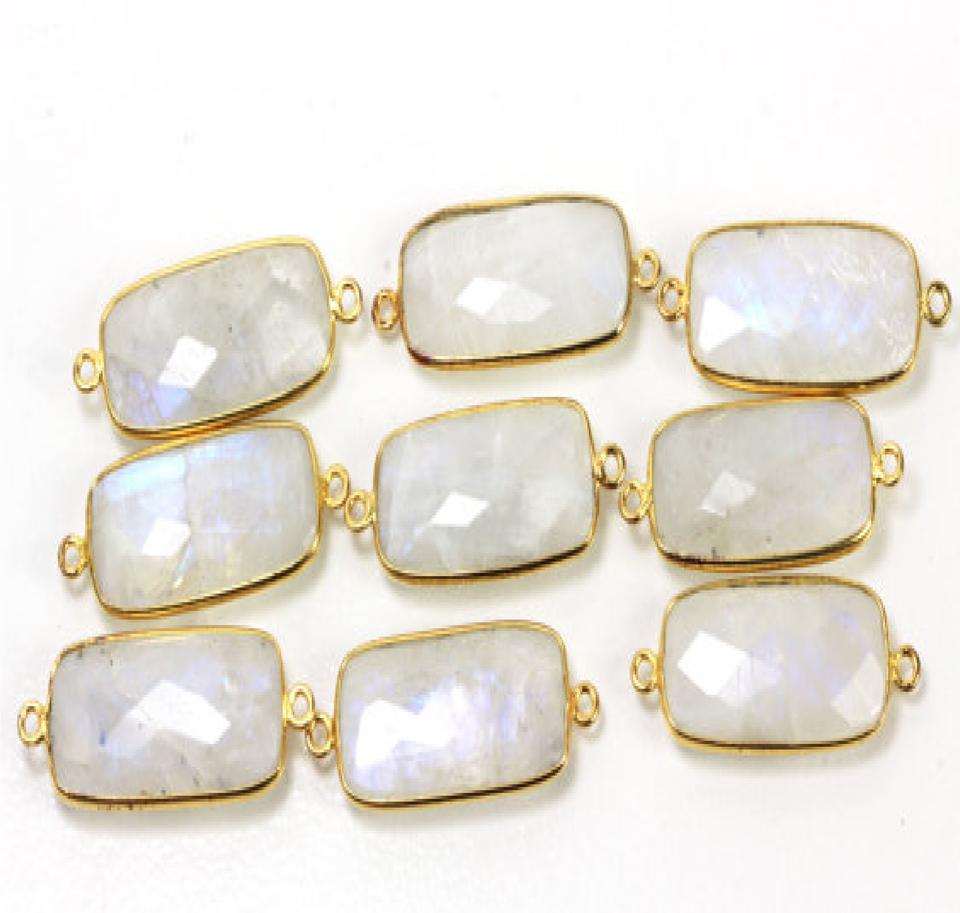 รุ้งมูนสโตนทรงสี่เหลี่ยมผืนผ้าตัวเชื่อมต่อจี้เสน่ห์วินเทจสองชั้นพร้อมฝาทองเวอร์เมลสัญลักษณ์ทางศาสนาคริสเตียน
