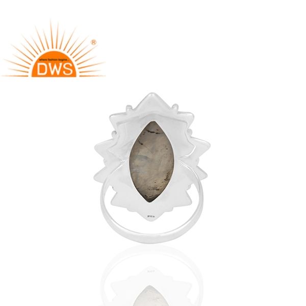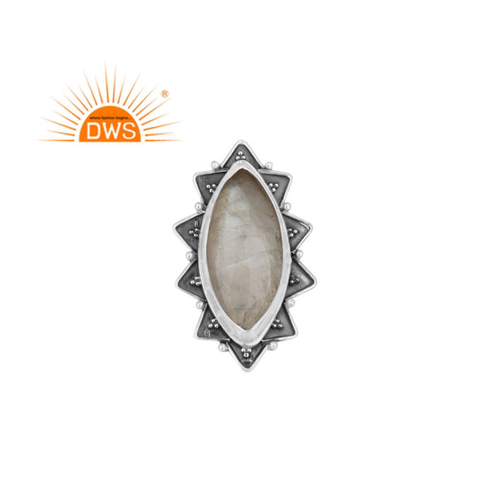 แหวนพลอยมูนสโตนสีรุ้งของนักออกแบบโบราณแหวนเงินสเตอริง925วินเทจเครื่องประดับคอลเลกชันคลาสสิก