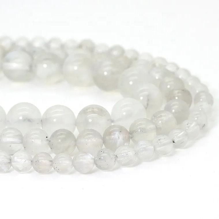 ลูกปัดกลมสีรุ้งทรงกลมเรียบสำหรับทำเครื่องประดับพลอยมูนสโตนธรรมชาติขนาด4-10มม. ลูกปัดหลวมจากขายส่ง