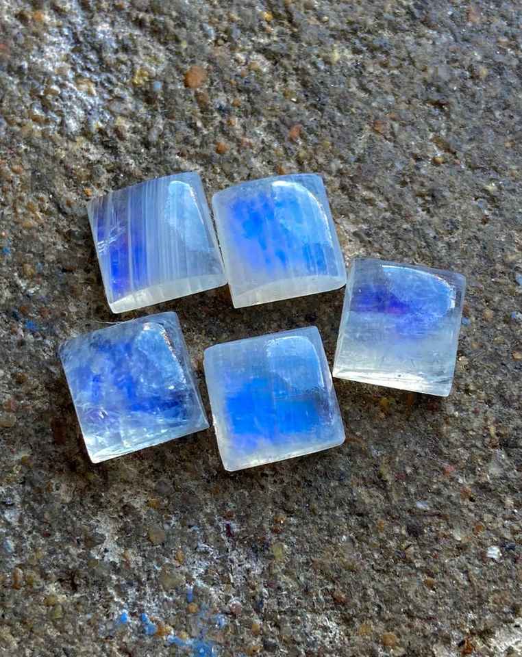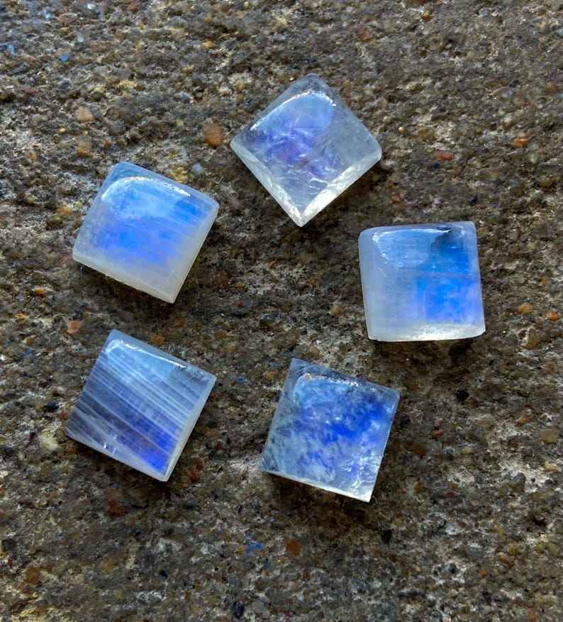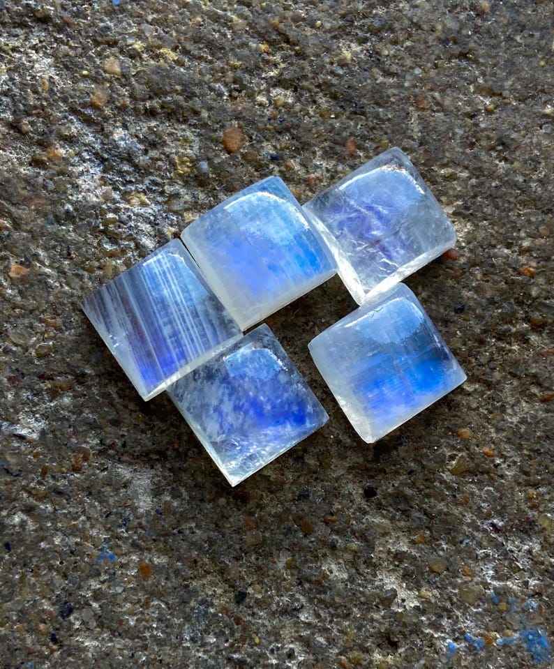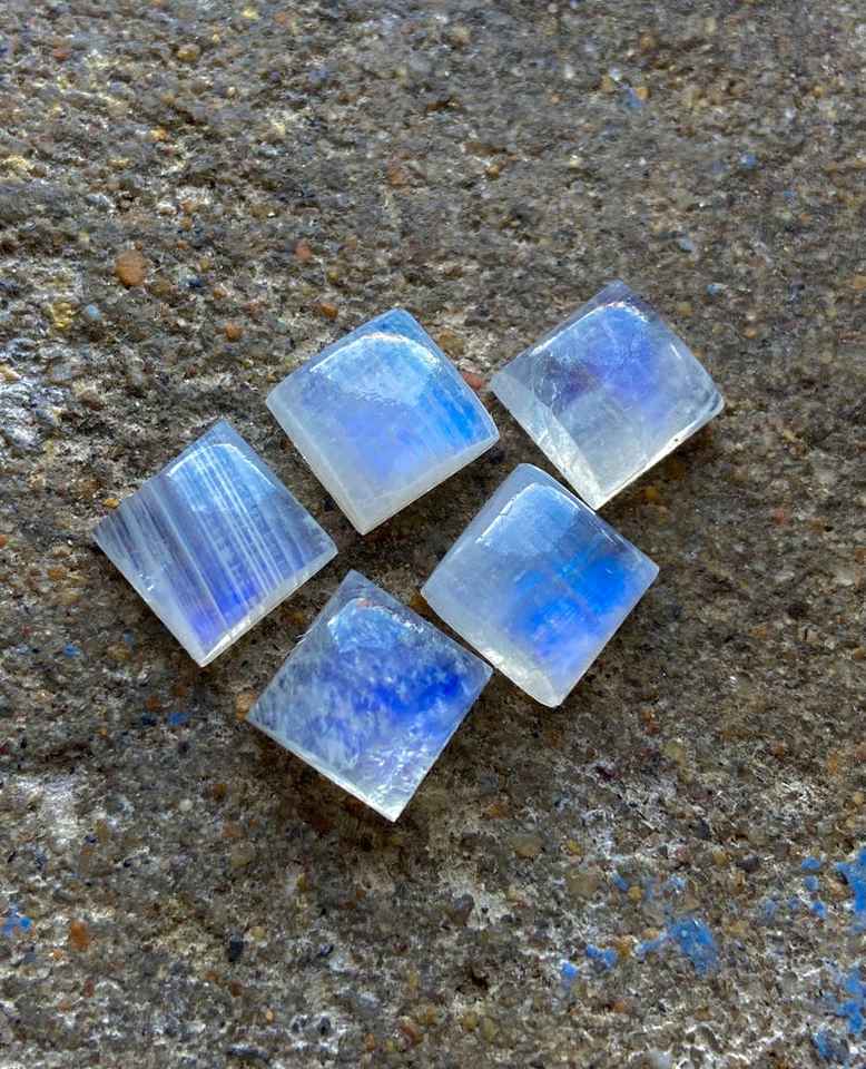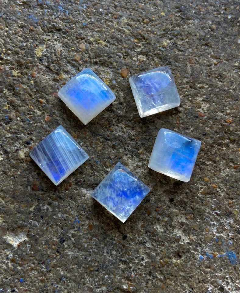 พลอยมูนสโตนทรงสี่เหลี่ยมแบบคาโบชอง ขนาดปรับเทียบแล้ว พลอยธรรมชาติแบบเม็ดเดี่ยว สำหรับทำเครื่องประดับ