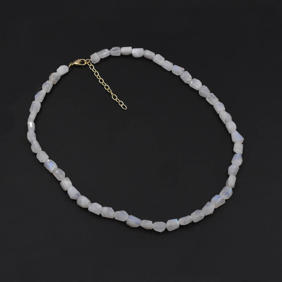 สร้อยคอลูกปัดแฮนด์เมดปรับได้สีรุ้งมูนสโตนสำหรับตัดเป็นรูปนักเก็ตเงินทองและชุบทอง