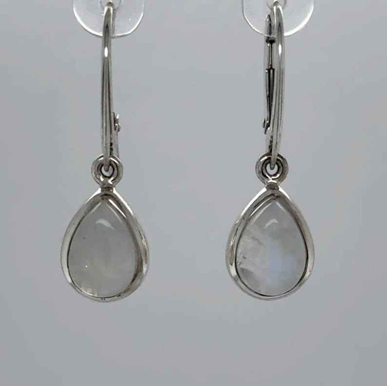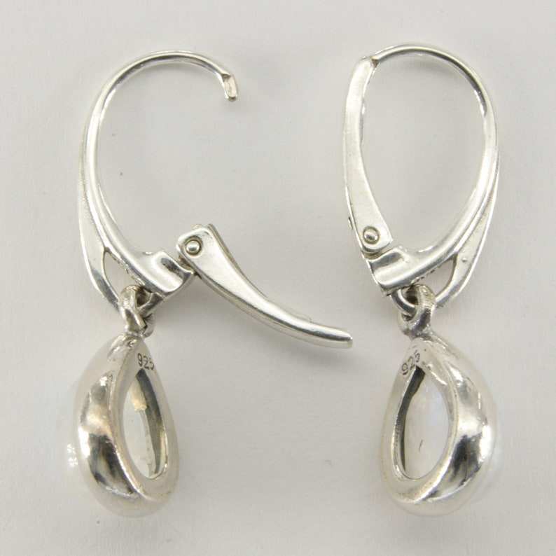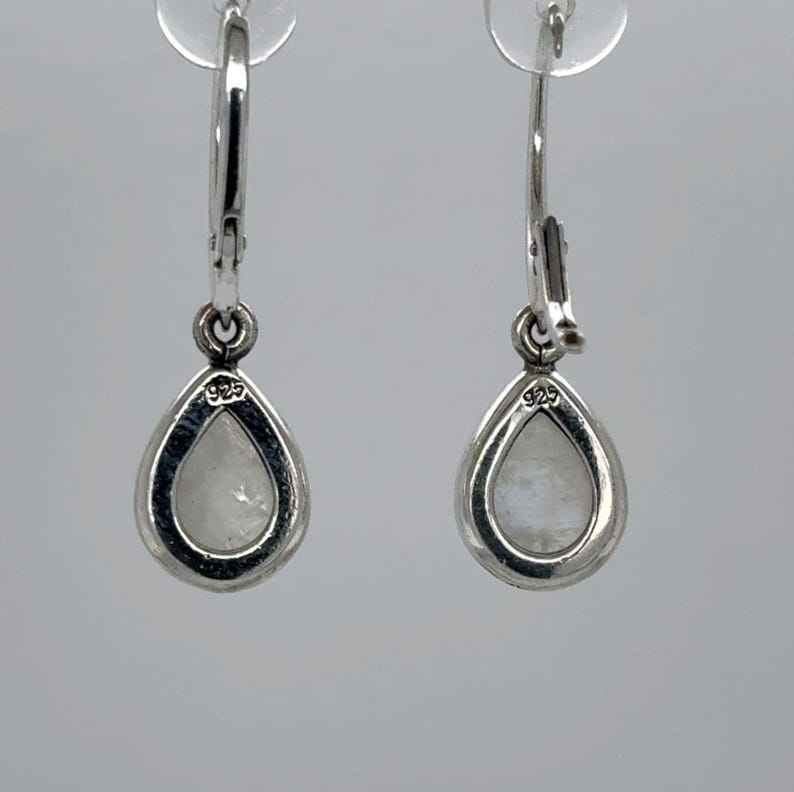 ต่างหูระย้าทรงหยดน้ำสีรุ้งพระจันทร์สี925ดีไซน์แบบด้านหลังสีเงินสเตอร์ลิง