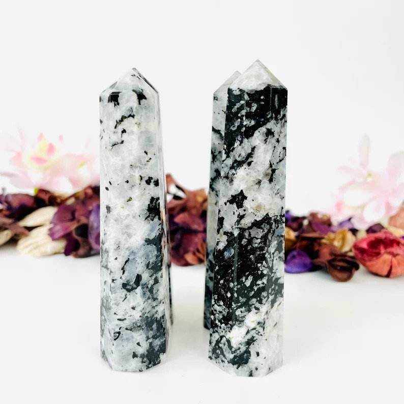 เรนโบว์มูนสโตนทาวเวอร์คริสตัลแบบพกพา,คริสตัลช่วยบำบัดทรงดินสอมูนสโตนเสาโอเบลิสค์