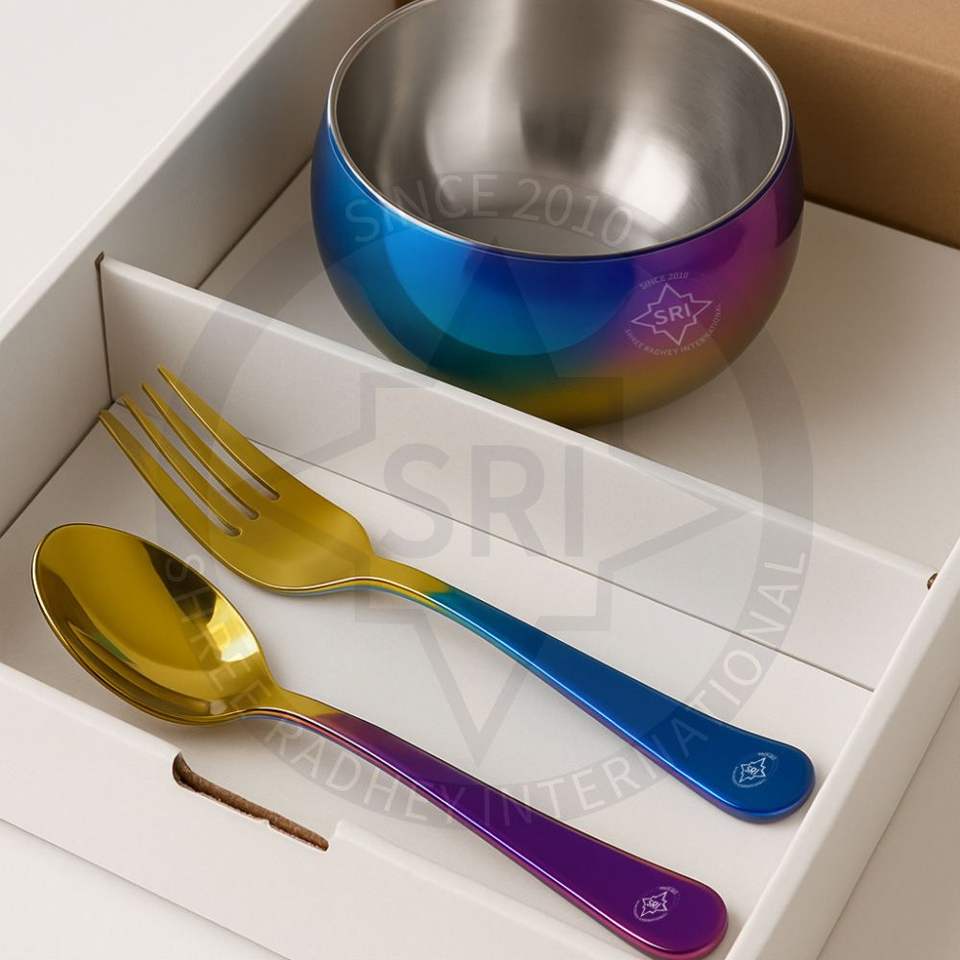 Rainbow PVD ชามสแตนเลสพร้อมช้อนชุดพรีเมี่ยม