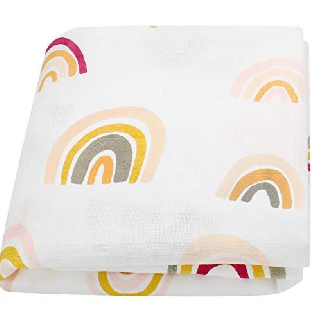 เรนโบว์พิมพ์ทารกแรกเกิดมัสลินผ้าเด็ก100% ผ้าฝ้ายอินทรีย์ GOTS ได้รับการรับรอง