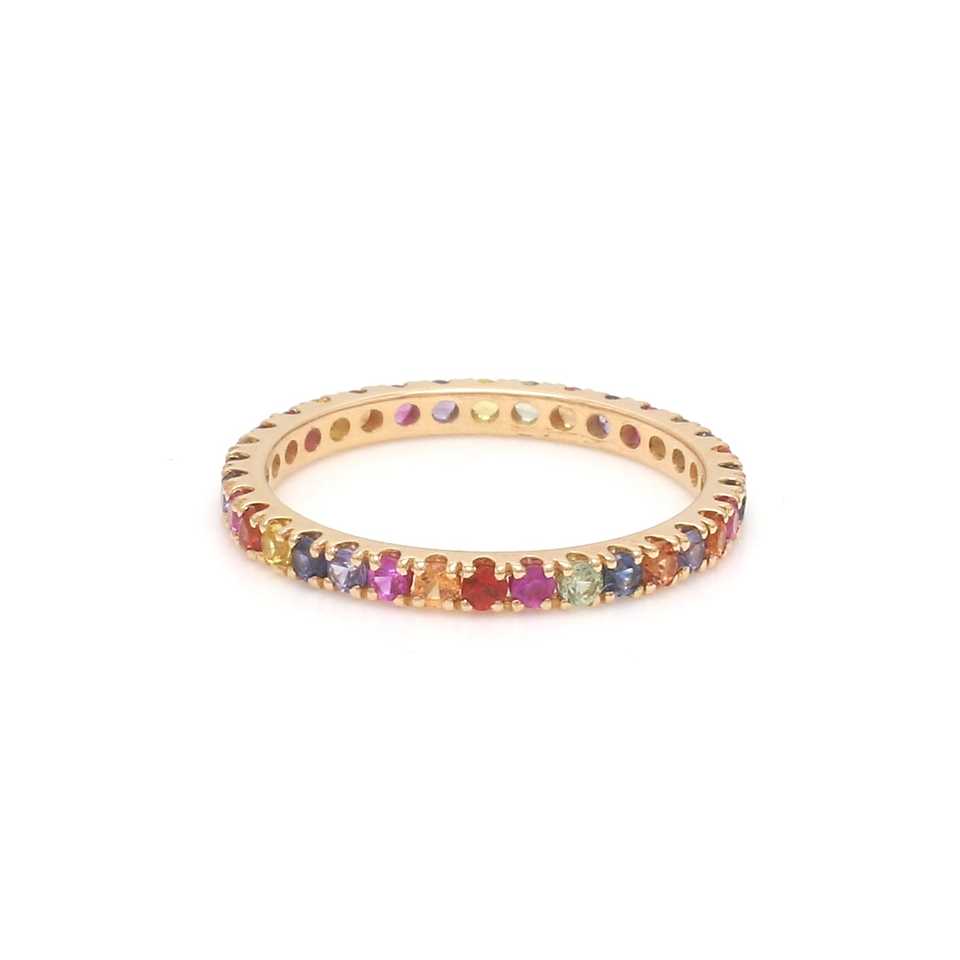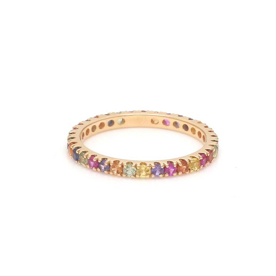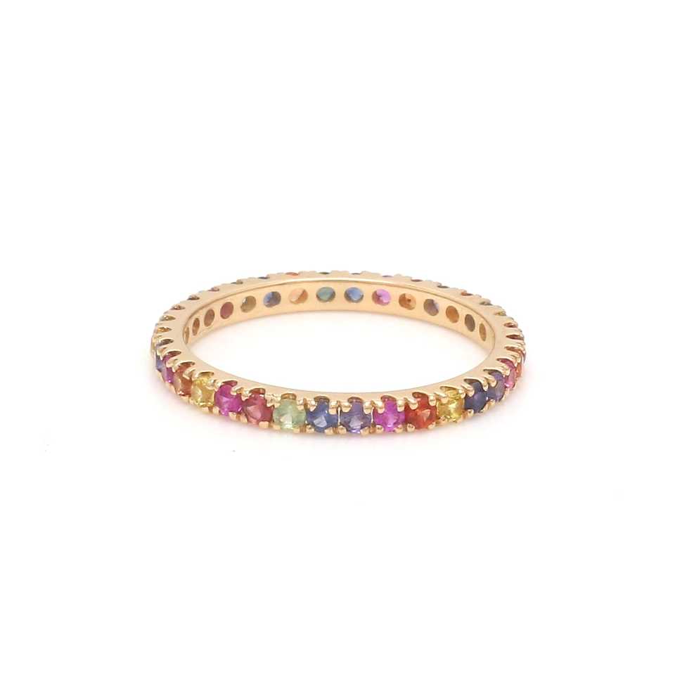 แหวนพลอยสีรุ้งแซฟไฟร์ 14k แหวนพลอยธรรมชาติหลากสี แหวนทองคำแท้เรียบง่าย แหวนพลอยนิรันดร์ เครื่องประดับผู้หญิง ขายส่ง/OEM