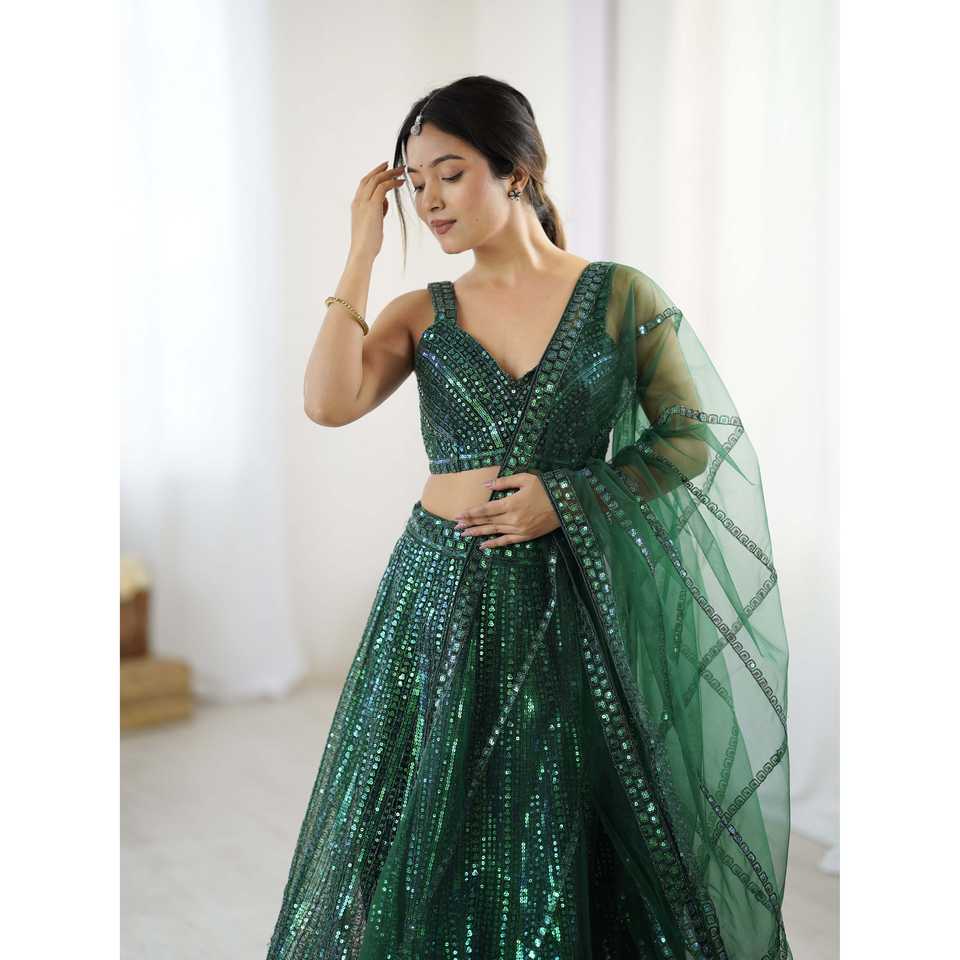 เลื่อมสีรุ้งและชุดการแสดง dori lehenga choli สำหรับงานเลี้ยง