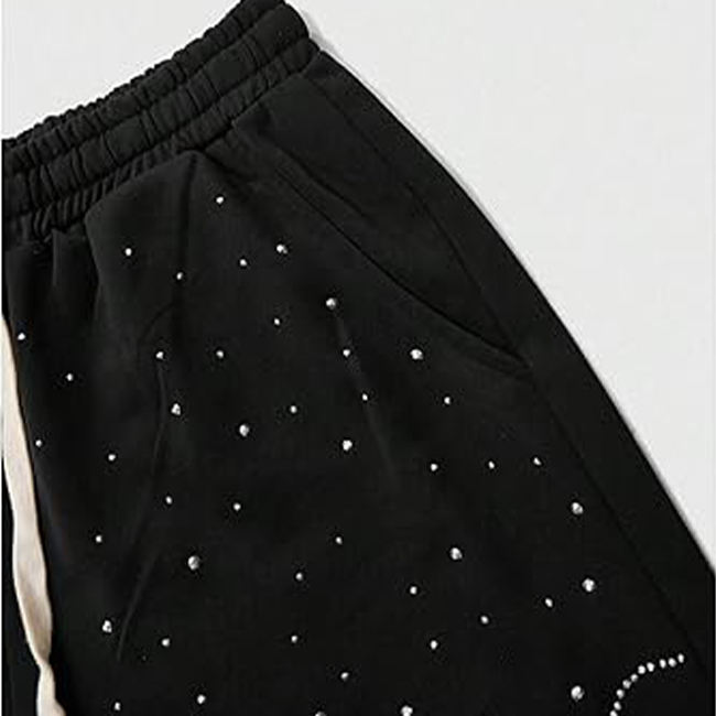 คำสำคัญ:กางเกงวอร์มขากว้างประดับเพชรสำหรับผู้ชาย พร้อมโลโก้สั่งทำพิเศษ สไตล์สตรีทแวร์