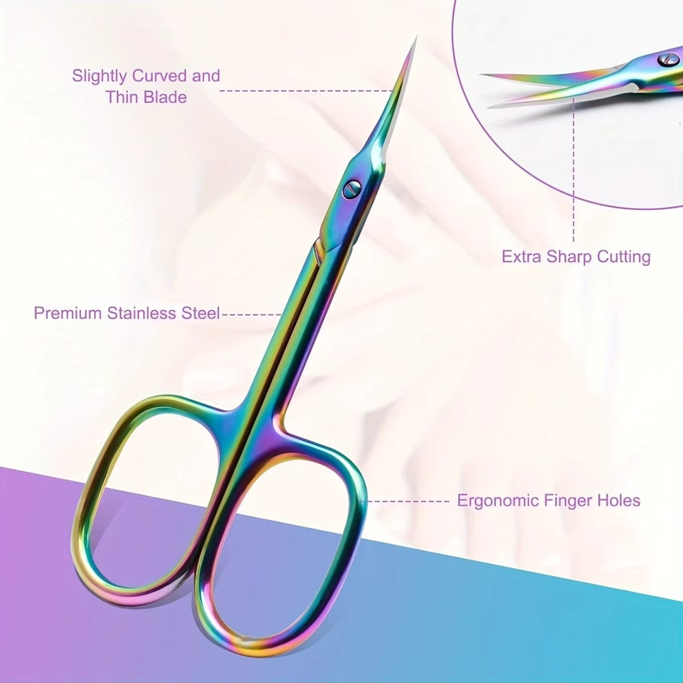 กรรไกรตัดหนังกำพร้าสแตนเลสอเนกประสงค์สีรุ้งด้ามจับเหมาะกับสรีระเหมาะสำหรับดูแลเล็บขนตาคิ้วเครื่องมือความงาม